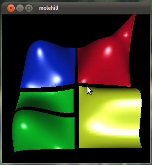 the molehill example on the opengl page is not been draw correctly, there are some black pieces that separe the colors. This is a screenshot of how should be draw: http://www.opengl.org/resources/code/samples/glut_examples/examples/molehill.jpg The source code of the example can be found on: http://www.opengl.org/resources/code/samples/glut_examples/examples/molehill.c