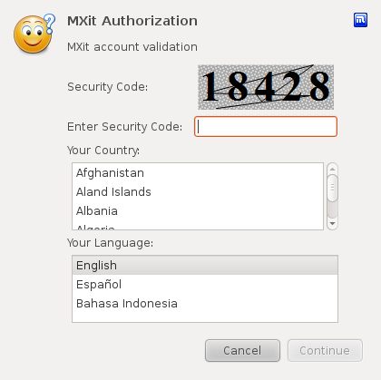 Created attachment 40620 [details] Pidgin MXit input form I'm trying to connect to my MXit account in Empathy via telepathy-haze. On and only on first connection, the MXit server requires the user to enter three fields: 1) a captcha image 2) language 3) country In Pidgin, these fields are all shown in a single form. See screenshot attached. The values of the fields are all gathered from a single HTTP request to the server. It is impossible to connect to the MXit server if the values are not completed first. Telepathy-Haze doesn't display any form on which the user can enter the values.
