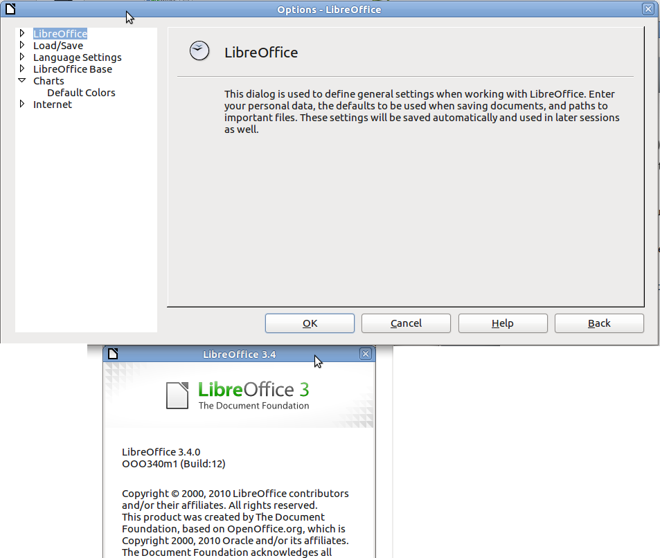 Hi, There is several OOo icons in options "chapters" (menu Tools > Options > first pages with text only) : LibreOffice, Writer, Writer/Web, Calc, Impress, Draw, Base, Math. Best regards. JBF