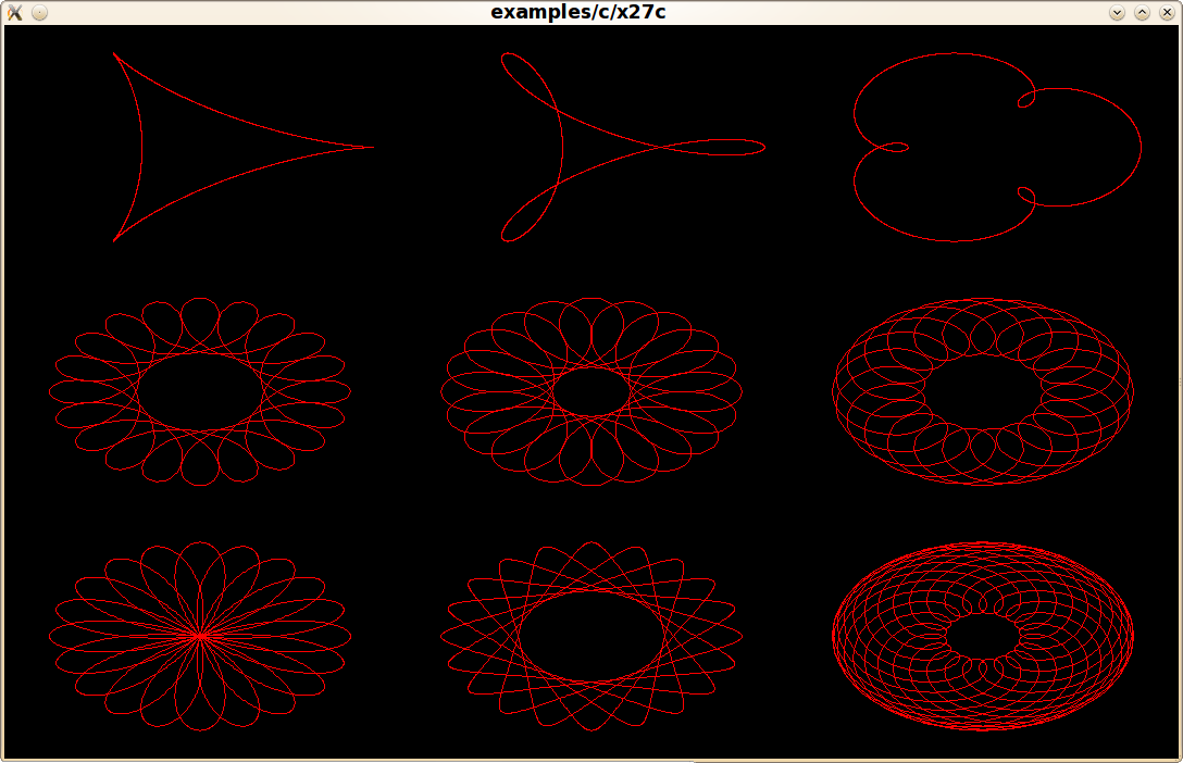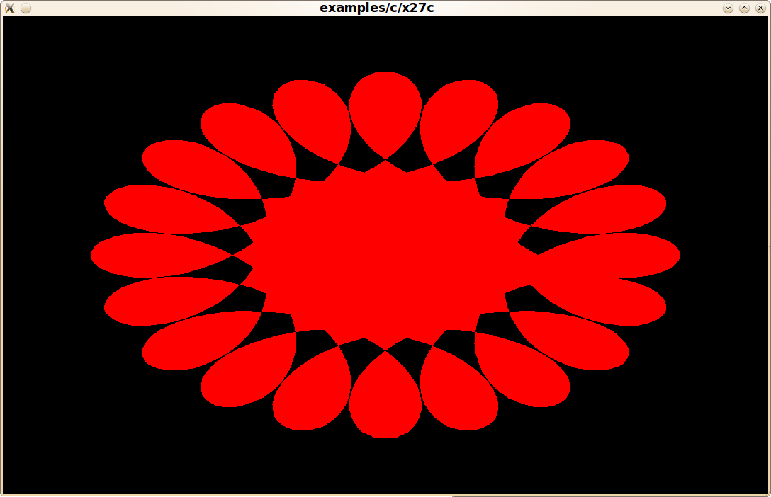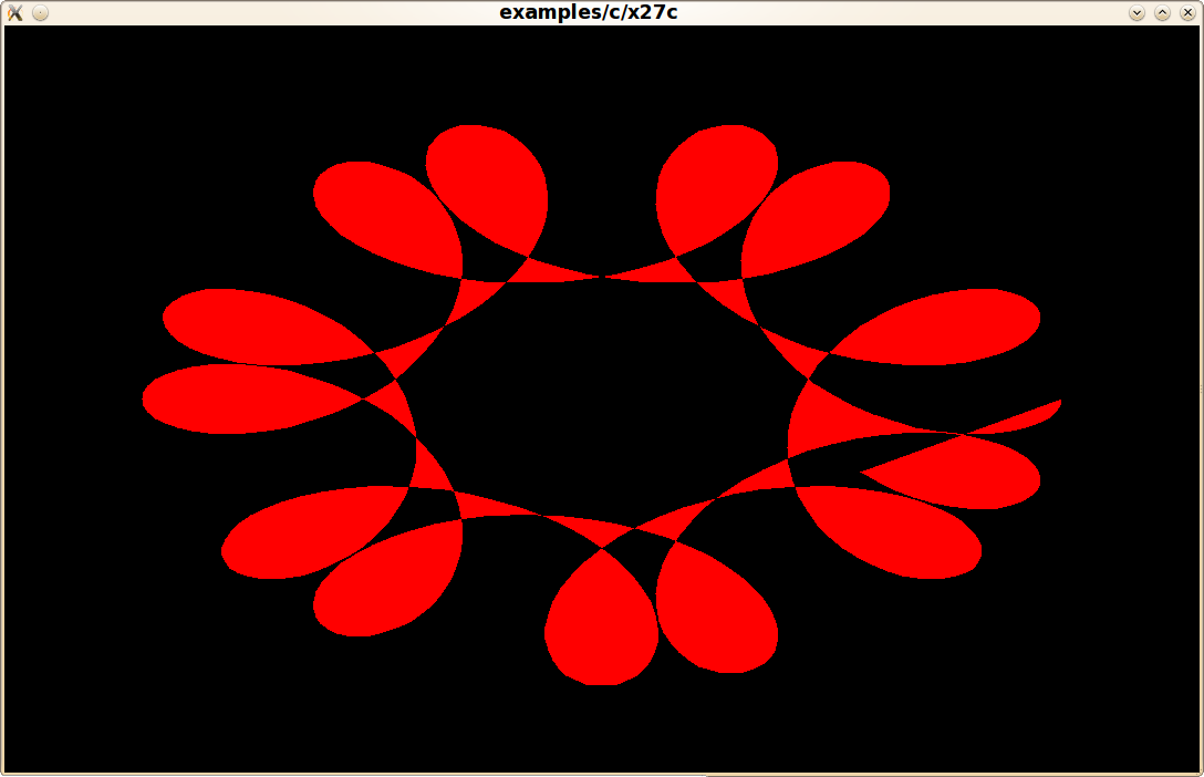 The PLplot development team have just implemented a demanding 2D fill rendering test for the X stack where we modify our standard example 27 (see http://plplot.sourceforge.net/examples.php?demo=27) to change from drawing the boundary line of "spirographic" (e.g., hypotrochoid and epitrochoid) curves to filling those curves. The boundaries of the 9 test curves are illustrated in the first attachment. The fills of those test curves (implemented using XFillPolygon with a Complex shape and 20000 points in the polygon describing the boundary) have rendering errors. If the fill is done with the EvenOddRule filling rule (set using XSetFillRule) the rendering errors are severe. The first through 3rd test cases show blank results (not illustrated) and the 4th test case (second attachment) and remaining more complex fill cases (not illustrated) show severe rendering errors with many fills missing and some areas filled that should not be. If the fill is done with the WindingRule filling rule, the fill rendering errors are much less severe than in the case of the EvenOddRule filling rule. The first (attached), second (not illustrated) , and 3rd (not illustrated) test cases look fine, but the fourth (attached) and remaining (not illustrated) test cases have minor rendering errors (areas filled which should not be on the right-hand side of the figure so the total result is asymmetric rather than symmetric as it should be for the symmetric hypotrochoid and epitrochoid boundary curves of the fill. Because most applications and libraries (including the PLplot one) have great success with X filling with a small (3 or 4) number of points in the boundary for the normal default EvenOddRule filling rule, I tried the experiment of reducing the number of points from 20000 to 200, but that made no qualitative difference to the severely bad fill rendering for the EvenOddRule filling rule. My platform is Debian Squeeze with Intel (g33) video chipset. I first reported this bug at http://bugs.debian.org/cgi-bin/bugreport.cgi?bug=615491. My original report was for the intel driver, but at Michel Dänzer's suggestion, I also tried the fbdev and vesa drivers which also showed the identical issue. The following steps (which need just a few minutes) are required to replicate this bug: * Get latest svn trunk version of PLplot source code following the directions (including appending '/trunk' to the HTTPS URL) at http://sourceforge.net/scm/?type=svn&group_id=2915. This download should only take a few minutes. * Optionally modify drivers/xwin.c to change XSetFillRule call from WindingRule to EvenOddRule (if you want to see the horrendous results from that filling rule as opposed to the mildly bad results from WindingRule). * Optionally modify examples/c/x27c.c (say to change the number of points in the boundary from 20000 to 200 or 2000000). * Build this particular PLplot x27c test and the xwin driver in an initially empty build tree. This should only take a minute or so. mkdir build_dir cd build_dir cmake -DBUILD_TEST=ON /PATH/TO/TOP/OF/SOURCE/TREE make xwin x27c * Run example to show fill problems for self-intersecting boundaries. examples/c/x27c -dev xwin You advance from one page of that test example to the next by hitting the return/enter key. The first set of pages should display just the self-intersecting boundaries, and the last set of pages should display the filled results for those boundaries. For the EvenOddRule fill rule, the first three "fill" pages are blank and the remaining pages badly filled. For the WindingRule fill rule, the first three "fill" pages are fine, but the remaining ones have small fill errors (showing as fill asymmetries on the right of the figure). Alan W. Irwin