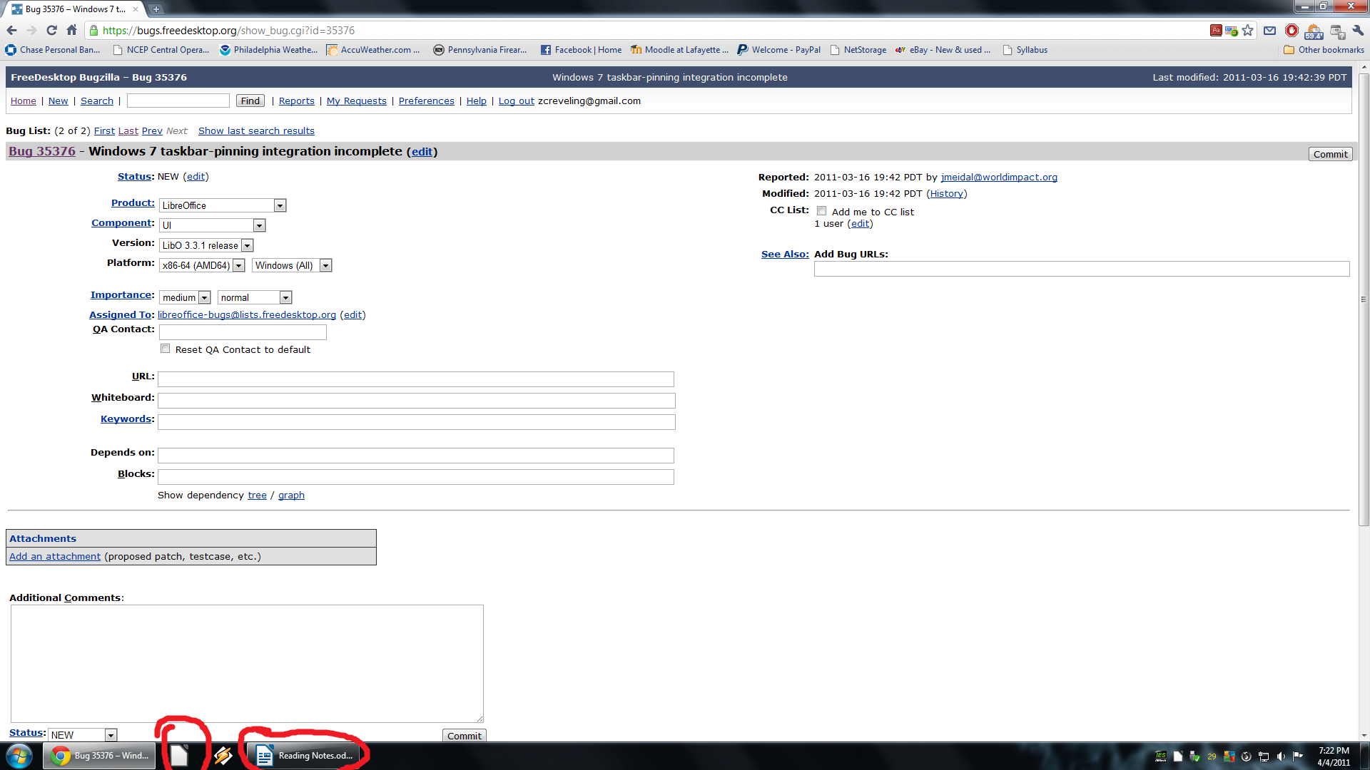 (In reply to comment #1) > Created an attachment (id=45248) [details] > Taskbar pinning fail screenshot > > I can confirm this bug. The OP's comment is a little confusing but hopefully > this screenshot clears up the problem. When LO is pinned to the taskbar and > any file that opens in LO is opened in explorer a new tab of LO is created in > the taskbar rather than expanding the pinned LO icon. If this is at all > confusing please look at the attached screenshot. > > Of note: this behavior does NOT occur when quickstarter is enabled. In the screenshot it shows my quickstarter is enabled, but this is only because I had disabled it just for this test. As soon as I opened the document quickstarter was re-enabled. For those not using quickstarter this bug occurs all the time.