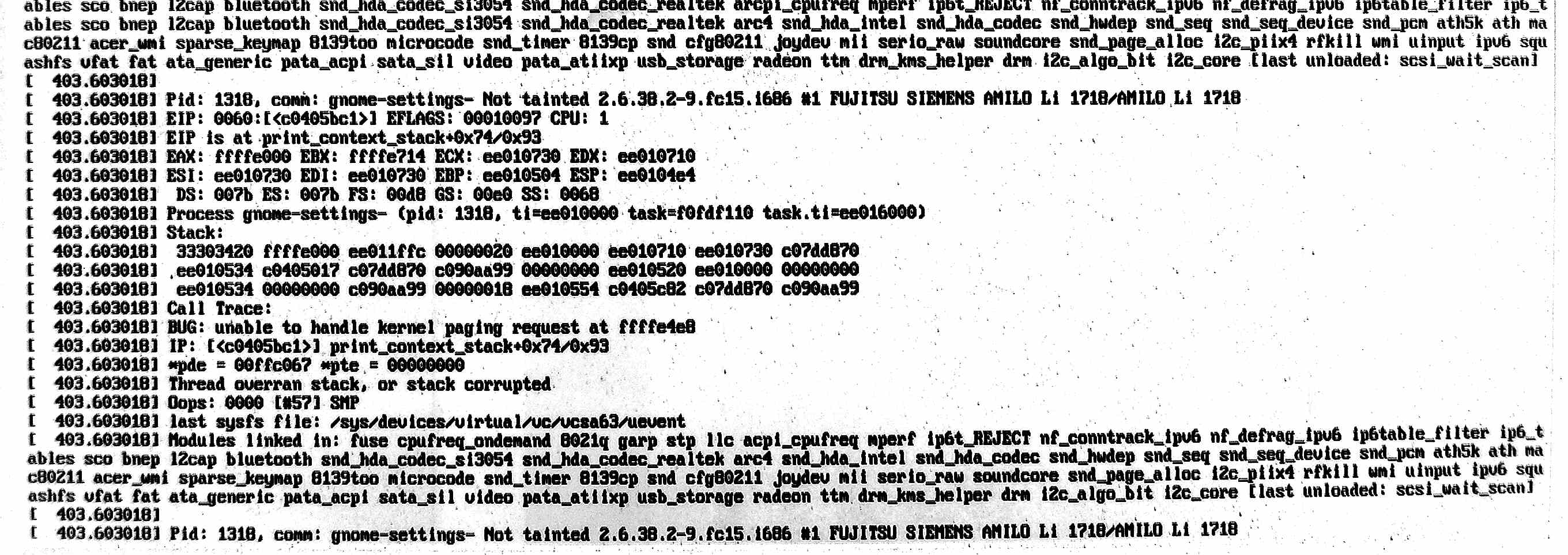 Created attachment 46931 [details] A failed resume's recurring log- Fedora 15 beta I've made a bootable live Fedora 15 beta USB, booted, and noticed, that gnome3 had only a suspend in it's "live user options" menu, so I clicked it. It suspended correctly, as expected. Then I pressed the power button, to see whether it resumes, or not. It doesn't, but the screen got backlit, and this message kept running on the screen. Pressing ctrl+alt+F3 stopped it, and I was able to take a photo of it (don't know how to get this message in text form), and I enhanced it a little.
