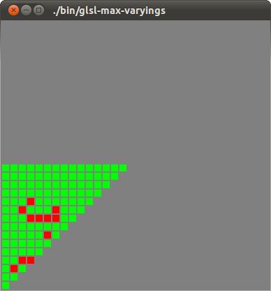 Created attachment 50593 [details] glsl-max-varyings.png mesa: 3bcb9a858f482c21bc7c4d0fcd3571e25ea95090 (master) piglit glsl-max-varyings now fails on softpipe. It passes on these branches. mesa: 6c1a9a327d031cd46680f28de8636b9335847650 (7.11) mesa: 7c3cf50d9988d721e79277180e29aaf6afa40be5 (7.10) mesa: 5078cb68586a52e2a2a991c6e89ed42e8bac7d96 (7.9) $ ./bin/glsl-max-varyings -auto Vertical axis: Increasing numbers of varyings. Horizontal axis: Which of the varyings contains the color. GL_MAX_VARYING_FLOATS = 60 Probe at (38,38) Expected: 0.000000 1.000000 0.000000 Observed: 1.000000 0.000000 0.000000 Failure with 4 vec4 varyings used in varying index 3 Probe at (14,74) Expected: 0.000000 1.000000 0.000000 Observed: 1.000000 0.000000 0.000000 Failure with 7 vec4 varyings used in varying index 1 Probe at (38,86) Expected: 0.000000 1.000000 0.000000 Observed: 1.000000 0.000000 0.000000 Failure with 8 vec4 varyings used in varying index 3 Probe at (50,98) Expected: 0.000000 1.000000 0.000000 Observed: 1.000000 0.000000 0.000000 Failure with 9 vec4 varyings used in varying index 4 Probe at (38,110) Expected: 0.000000 1.000000 0.000000 Observed: 1.000000 0.000000 0.000000 Failure with 10 vec4 varyings used in varying index 3 Probe at (26,122) Expected: 0.000000 1.000000 0.000000 Observed: 1.000000 0.000000 0.000000 Failure with 11 vec4 varyings used in varying index 2 Probe at (50,170) Expected: 0.000000 1.000000 0.000000 Observed: 1.000000 0.000000 0.000000 Failure with 15 vec4 varyings used in varying index 4 PIGLIT: {'result': 'fail' }