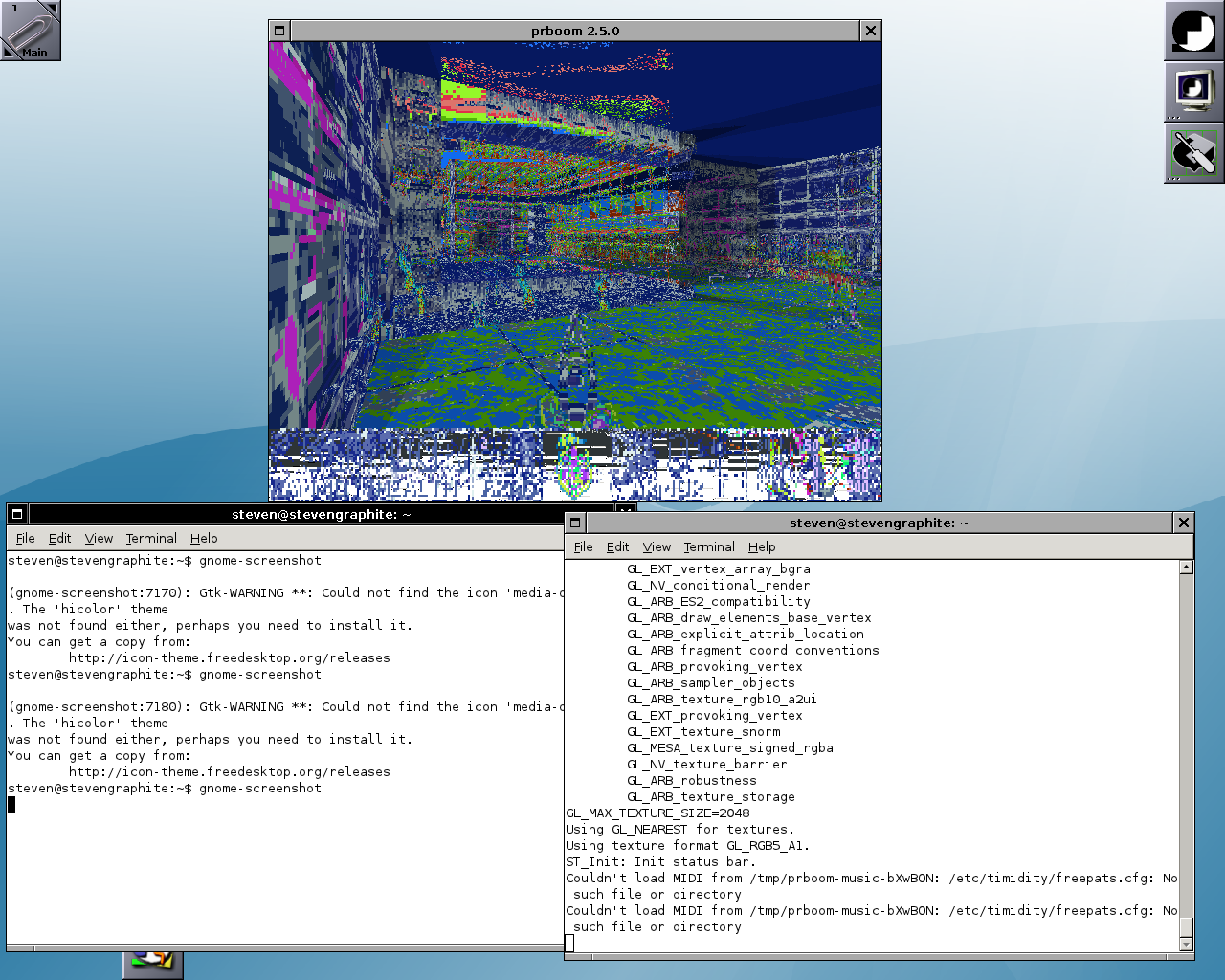 Created attachment 54298 [details] PrBoom With git b1a8b7b0196c73bcfe488cbfc9e9fcd1d7ce7d9b. Texture colors are incorrect, they appear to be ABGR instead of RGBA, thus blue becomes green, red becomes alpha, etc. The only thing that is not affected is glxgears, but that does not use any textures.