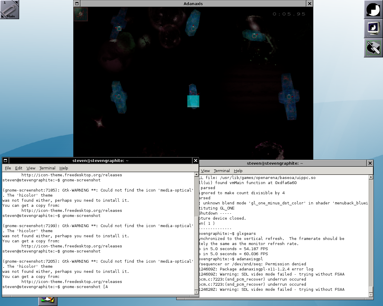 Compiled and using Mesa 11.3.0-devel (git-59156b2) now on my PowerMac G5 7,3 with an AGP Radeon 9600, rv350 class card. Tested so far: AssaultCube, Extreme TuxRacer, RedEclipse, Sauerbraten. All installed from Ubuntu MATE 16.04 repositories. Garbled textures: RedEclipse, Sauerbraten. Extreme TuxRacer runs and is actually playable! However the colors are wrong and the backgrounnd sky is flickering constantly. AssaultCube crashes after showing the "Loading..." window. See https://bugs.launchpad.net/ubuntu/+source/assaultcube/+bug/1581805 Extreme TuxRacer and Sauerbraten have problems while changing the resolution. Both get REALLY sluggish then, hardware acceleration does not seem to work any longer. The console output starts showing "radeon 000:f0:10.0: ring 0 stalled for more than xxxx msec" messages during these resolution change problems in Extreme TuxRacer.