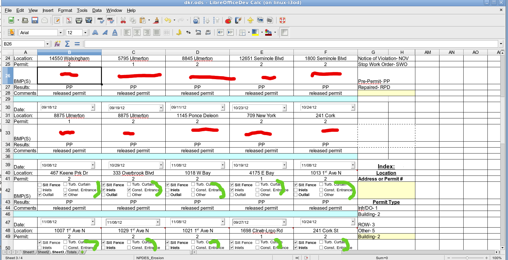 Looks like a regression. This was fixed in 3.6 and is broken again in 4.0.1. When I hope the file in 3.6, I cannot make the cell canvas go white. When I hope in LO 4 it's immediate and easy. If you move the spreadsheet off screen and back again it repaints and fixes itself. I think this is an X11 Expose event. Tested on 64bit Linux. Adding attachment, red area shows canvas not displaying correctly...the green area shows cells that are rendering correctly. Clicking into a cell causes it to go white along with other cells in the immediate area.