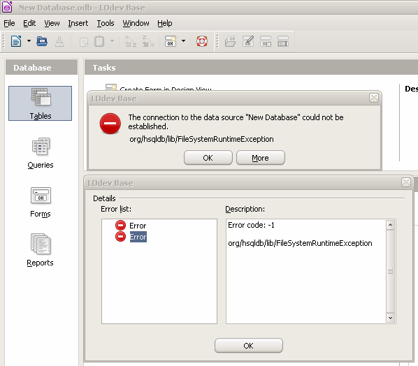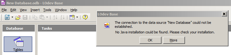 Created attachment 62447 [details] Base_error Well, LOdev-3.6.0alpha1_Win-x86 finds the path to the JRE now. But the connection to the tables in LOdev_Base impossible still. See the snapshot in the attachment.