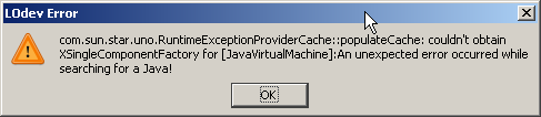 Created attachment 61275 [details] Macro crash notification My macros started from a user defined Menu entry do crash because Java Virtual Machine can not be found. I can confirm the findings of previous posters w.r.t. WinXP and Win7