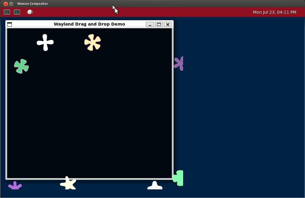Yeah, I guess we should fix that old bug: commit 0fd49aa8862a3c634ee6a14da139b4e5d620c605 Author: Kristian Høgsberg <krh@bitplanet.net> Date: Mon Jul 23 21:32:46 2012 -0400 dnd: Clip flowers to window content area