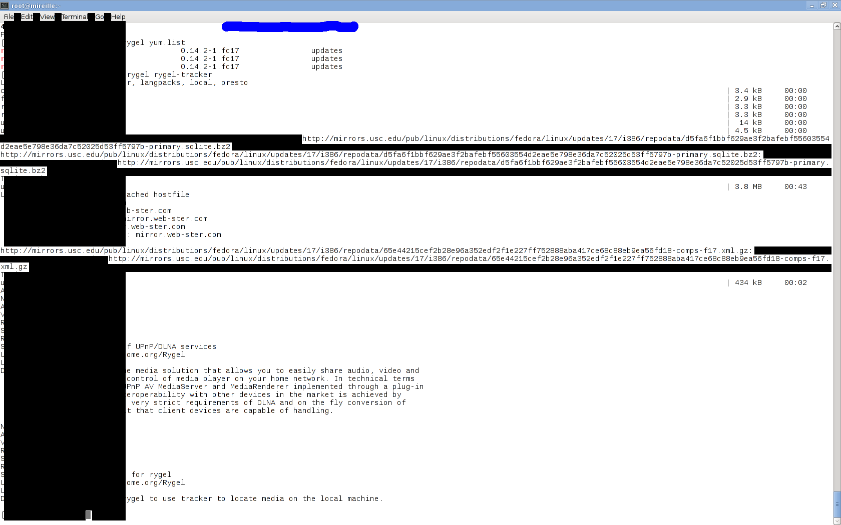 Created attachment 64825 [details] black squares over the text are corruption, blue overlay is censored edit Using Fedora 17 XFCE compiled xf86-video-intel-2.20.2 Option "AccelMethod" "SNA" Every once in a while, some on-screen corruption appears. In the attached example it showed up as black bars on top of URLs in Terminal, after I hovered over them with the cursor. Even more black bars appeared as I pressed PrintScreen to capture the screenshot. Note: blue blotch is censored work-related info, please ignore it Usually the corrption is restricted to menu bars, and usually goes away if the window is dragged off-screen and back to force a redraw X.Org X Server 1.12.2 Release Date: 2012-05-29 X Protocol Version 11, Revision 0 Build Operating System: x86-07 2.6.32-220.17.1.el6.x86_64 Current Operating System: Linux mireille 3.4.6-2.fc17.i686.PAE #1 SMP Thu Jul 19 21:49:03 UTC 2012 i686 Kernel command line: BOOT_IMAGE=/boot/vmlinuz-3.4.6-2.fc17.i686.PAE root=UUID=6f77f6b9-974d-458a-b437-678a17c954fc ro quiet rd.md=0 rd.lvm=0 rd.dm=0 rd.luks=0 elevator=noop raid=noautodetect rootfstype=ext4 libahci.ignore_sss=1 noisapnp quiet SYSFONT=latarcyrheb-sun16 LANG=en_US.UTF-8 KEYTABLE=us Build Date: 26 June 2012 04:33:13AM Build ID: xorg-x11-server 1.12.2-4.fc17 Current version of pixman: 0.24.4