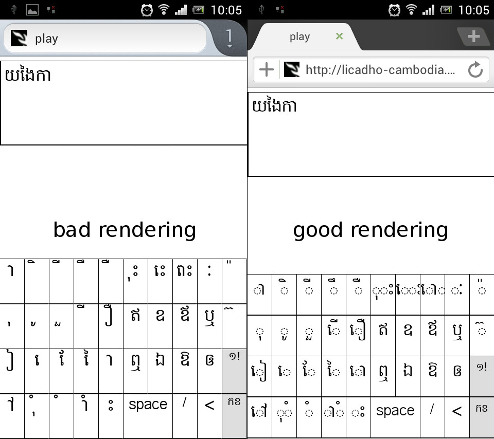 Created attachment 65752 [details] khmer keyboard rendering : harfbuzz on firefox vs android stock (not sure what its using to render khmer script)