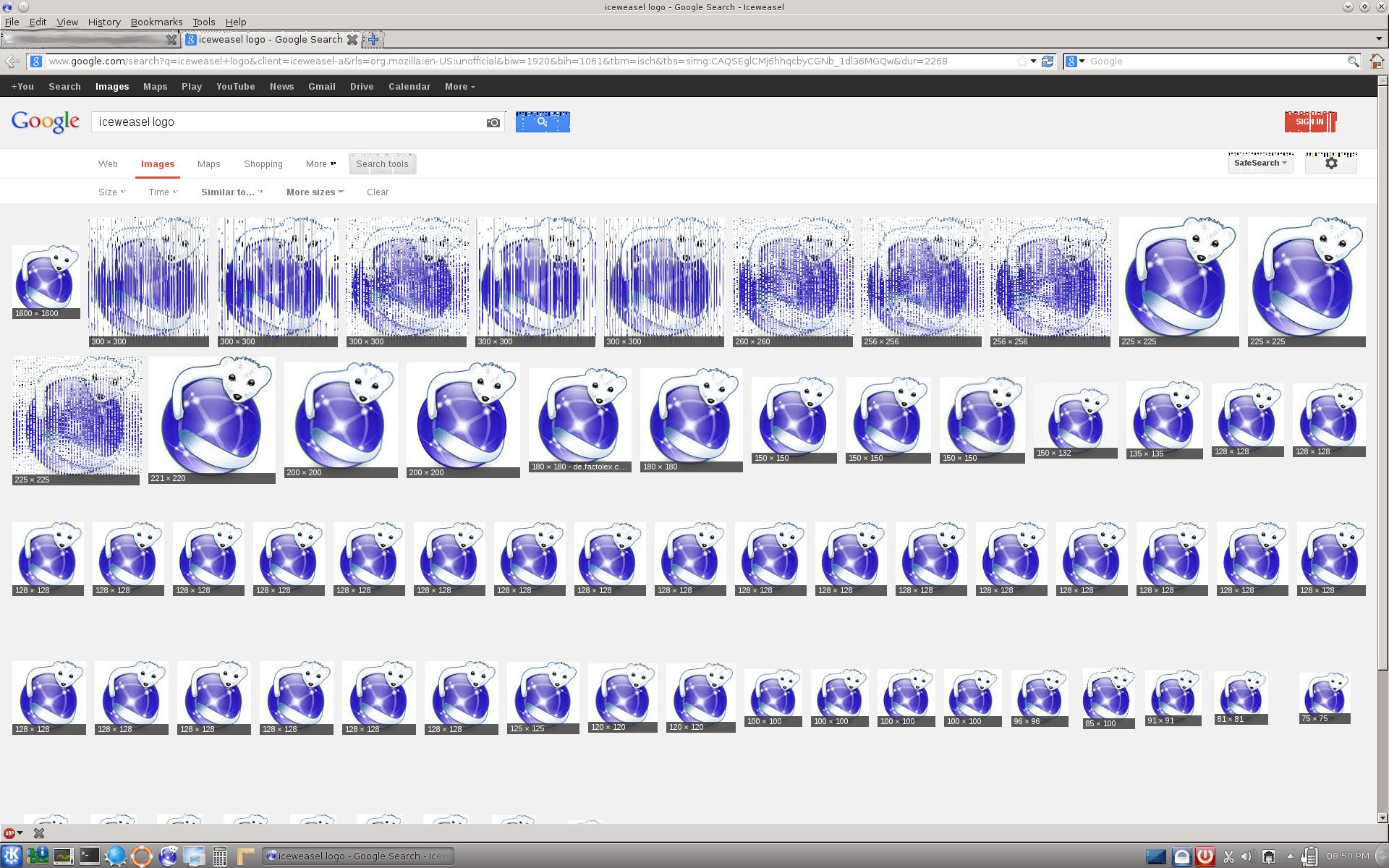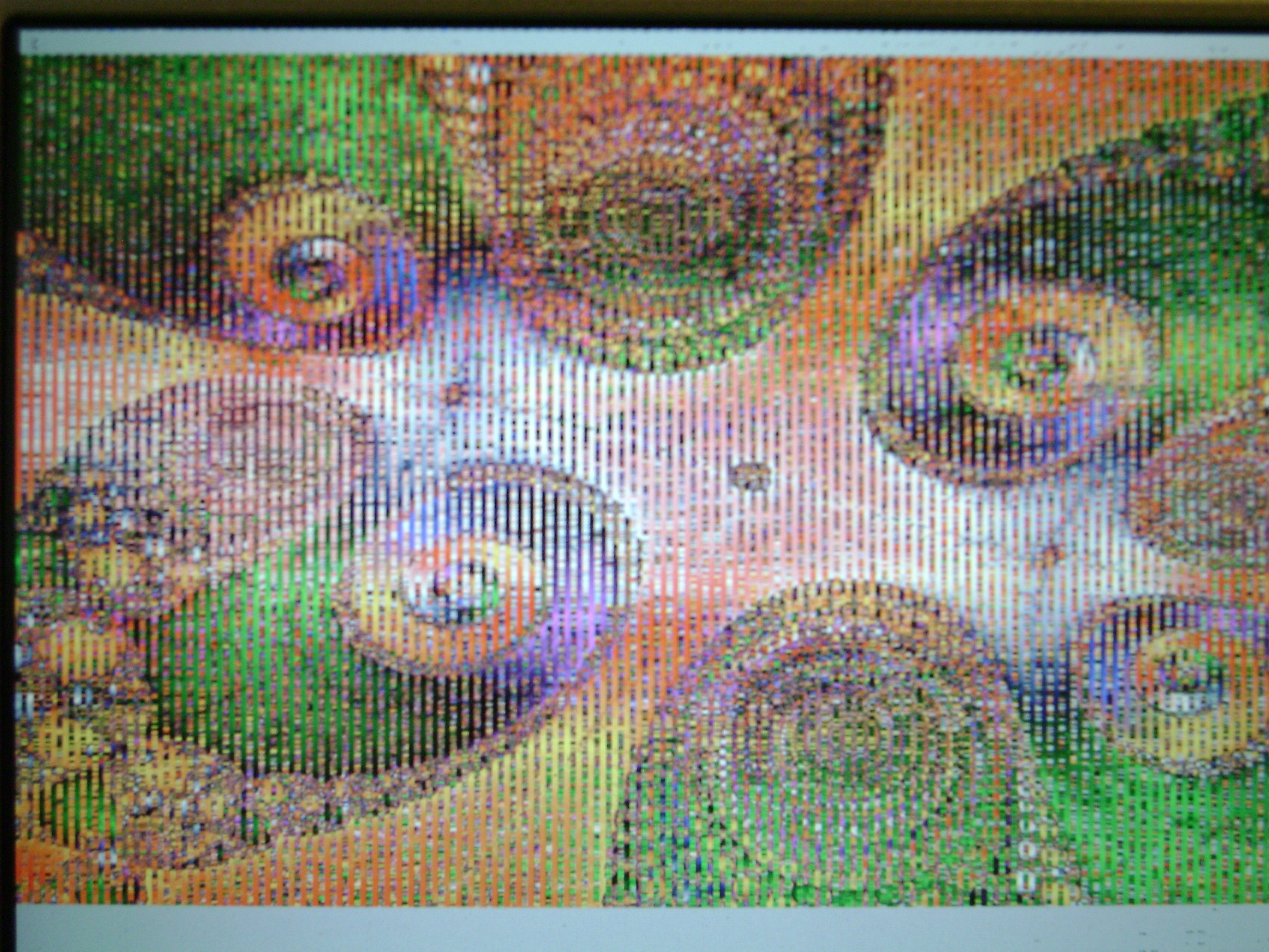Hi 1) I've downloaded an image of fractal and I've used this script #!/bin/bash BAN="fractal" EXT="jpg" for i in {001..100};do /usr/bin/convert "${BAN}.${EXT}" -resize "${i}%" -set filename:wh "%wx%h" "${BAN}_${i}_%[filename:wh].${EXT}" done to create 100 samples $ ls fractal_001_19x11.jpg fractal_011_211x119.jpg fractal_021_403x227.jpg fractal_031_595x335.jpg fractal_041_787x443.jpg fractal_051_979x551.jpg fractal_061_1171x659.jpg fractal_071_1363x767.jpg fractal_081_1555x875.jpg fractal_091_1747x983.jpg fractal.jpg fractal_002_38x22.jpg fractal_012_230x130.jpg fractal_022_422x238.jpg fractal_032_614x346.jpg fractal_042_806x454.jpg fractal_052_998x562.jpg fractal_062_1190x670.jpg fractal_072_1382x778.jpg fractal_082_1574x886.jpg fractal_092_1766x994.jpg fractal_003_58x32.jpg fractal_013_250x140.jpg fractal_023_442x248.jpg fractal_033_634x356.jpg fractal_043_826x464.jpg fractal_053_1018x572.jpg fractal_063_1210x680.jpg fractal_073_1402x788.jpg fractal_083_1594x896.jpg fractal_093_1786x1004.jpg fractal_004_77x43.jpg fractal_014_269x151.jpg fractal_024_461x259.jpg fractal_034_653x367.jpg fractal_044_845x475.jpg fractal_054_1037x583.jpg fractal_064_1229x691.jpg fractal_074_1421x799.jpg fractal_084_1613x907.jpg fractal_094_1805x1015.jpg fractal_005_96x54.jpg fractal_015_288x162.jpg fractal_025_480x270.jpg fractal_035_672x378.jpg fractal_045_864x486.jpg fractal_055_1056x594.jpg fractal_065_1248x702.jpg fractal_075_1440x810.jpg fractal_085_1632x918.jpg fractal_095_1824x1026.jpg fractal_006_115x65.jpg fractal_016_307x173.jpg fractal_026_499x281.jpg fractal_036_691x389.jpg fractal_046_883x497.jpg fractal_056_1075x605.jpg fractal_066_1267x713.jpg fractal_076_1459x821.jpg fractal_086_1651x929.jpg fractal_096_1843x1037.jpg fractal_007_134x76.jpg fractal_017_326x184.jpg fractal_027_518x292.jpg fractal_037_710x400.jpg fractal_047_902x508.jpg fractal_057_1094x616.jpg fractal_067_1286x724.jpg fractal_077_1478x832.jpg fractal_087_1670x940.jpg fractal_097_1862x1048.jpg fractal_008_154x86.jpg fractal_018_346x194.jpg fractal_028_538x302.jpg fractal_038_730x410.jpg fractal_048_922x518.jpg fractal_058_1114x626.jpg fractal_068_1306x734.jpg fractal_078_1498x842.jpg fractal_088_1690x950.jpg fractal_098_1882x1058.jpg fractal_009_173x97.jpg fractal_019_365x205.jpg fractal_029_557x313.jpg fractal_039_749x421.jpg fractal_049_941x529.jpg fractal_059_1133x637.jpg fractal_069_1325x745.jpg fractal_079_1517x853.jpg fractal_089_1709x961.jpg fractal_099_1901x1069.jpg fractal_010_192x108.jpg fractal_020_384x216.jpg fractal_030_576x324.jpg fractal_040_768x432.jpg fractal_050_960x540.jpg fractal_060_1152x648.jpg fractal_070_1344x756.jpg fractal_080_1536x864.jpg fractal_090_1728x972.jpg fractal_100_1920x1080.jpg I've do the same for fractal2, a different fractal (png) 2) opening the samples with iceweasel all gets well while the image is not rescaled by iceweasel: if the image is rescaled by iw then is rendered corrupted; if I enlarge the window (or zoom in) the image is rendered OK. See attachments fractal97 and fractal2..... I'm confused, I cannot find what Emil asked, i.e. a transition point in sizes from which distortion starts, seems more an iceweasel bug. See also attachment "looking for iceweasel logo". 3) the problem of corruption from rescaling to built-in viewers seems not there with the built in konqueror viewer and gwenviewer.... 4) running the various tests I got 2 crashes (black screen) :(((( see dmesg in attachment 5 [review]) to test the graphics in framebuffer, I've installed links2 ( http://links.twibright.com/ ) which is a web browser with graphic capabilities working also in framebuffer. Output is 100% corrupted, see photos attachments. (Of course I do not know if this is a link2 problem. I attached the console error output of links2. Regards ric (I'll disappear for 3 weeks sorry)