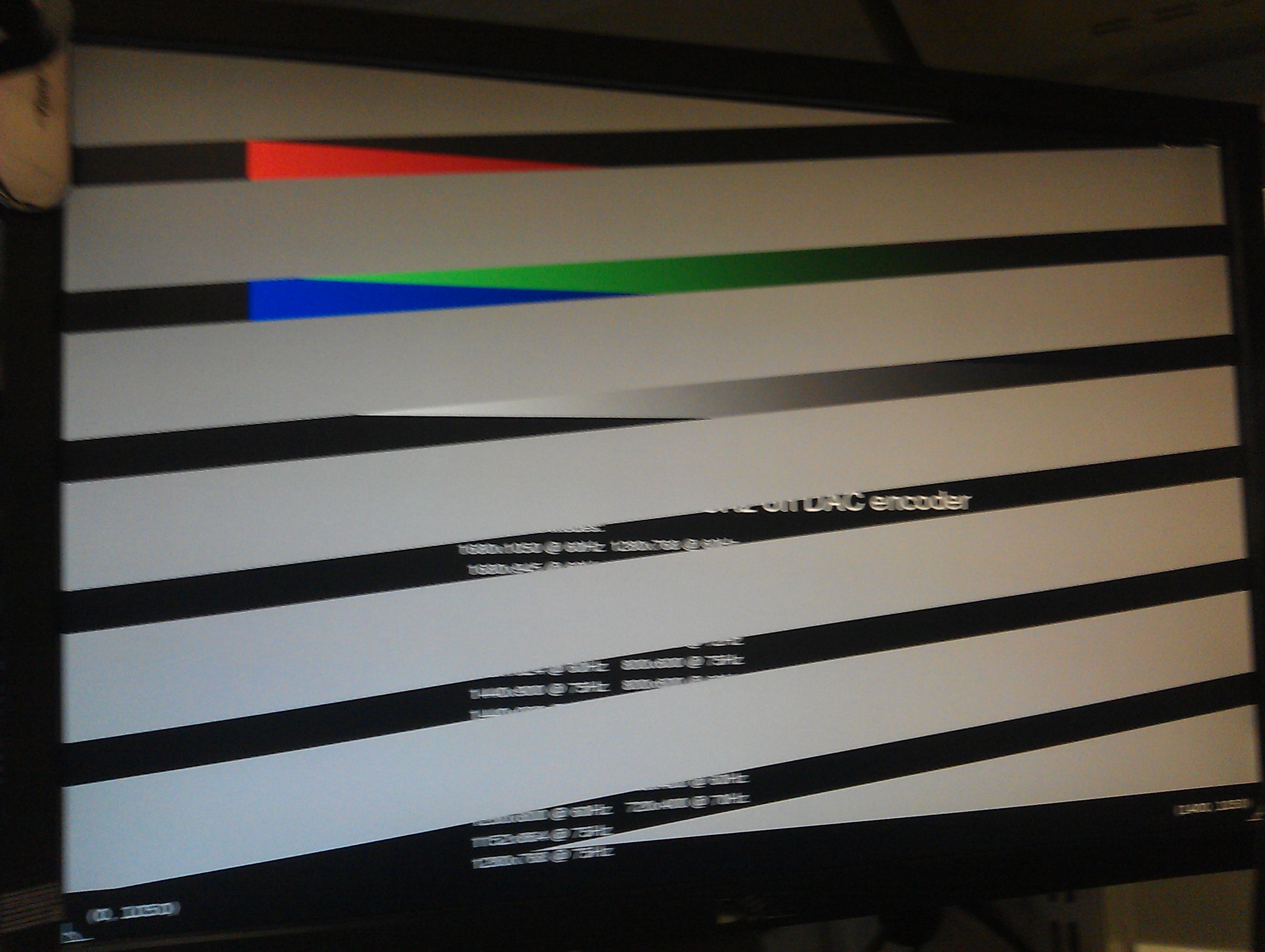 Bug in intel-gpu-tools, fixed in commit b11887741cdcf28d962aa7957b2f8fd30b081e6b Author: Damien Lespiau <damien.lespiau@intel.com> Date: Tue Nov 27 19:14:05 2012 +0000 testdisplay: Use the fb stride when painting the color key