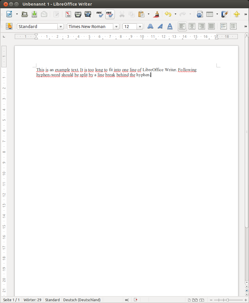 I discovered a regression in LibreOffice Writer 3.6.2.2 (Ubuntu 12.10): In 3.5, a line break was added after hyphens, if this was reasonable for formatting. This no longer is the case in 3.6.2.2. In other words, hyphens in words now are treated as if they were non-breaking dashs. I confirmed that other Ubuntu 12.10 users have the same issue. It's easy to reproduce this bug: write something in a new Writer document. At the end of a line, write a long word that doesn't match into the line. Add a simple hyphen (neither a protected/non-breaking dash, nor a definitive seperator) to the word. In earlier versions of LibreOffice, the line break was added behind the hyphen. Now, it's added in front of the full longword. Kind regards, jonas