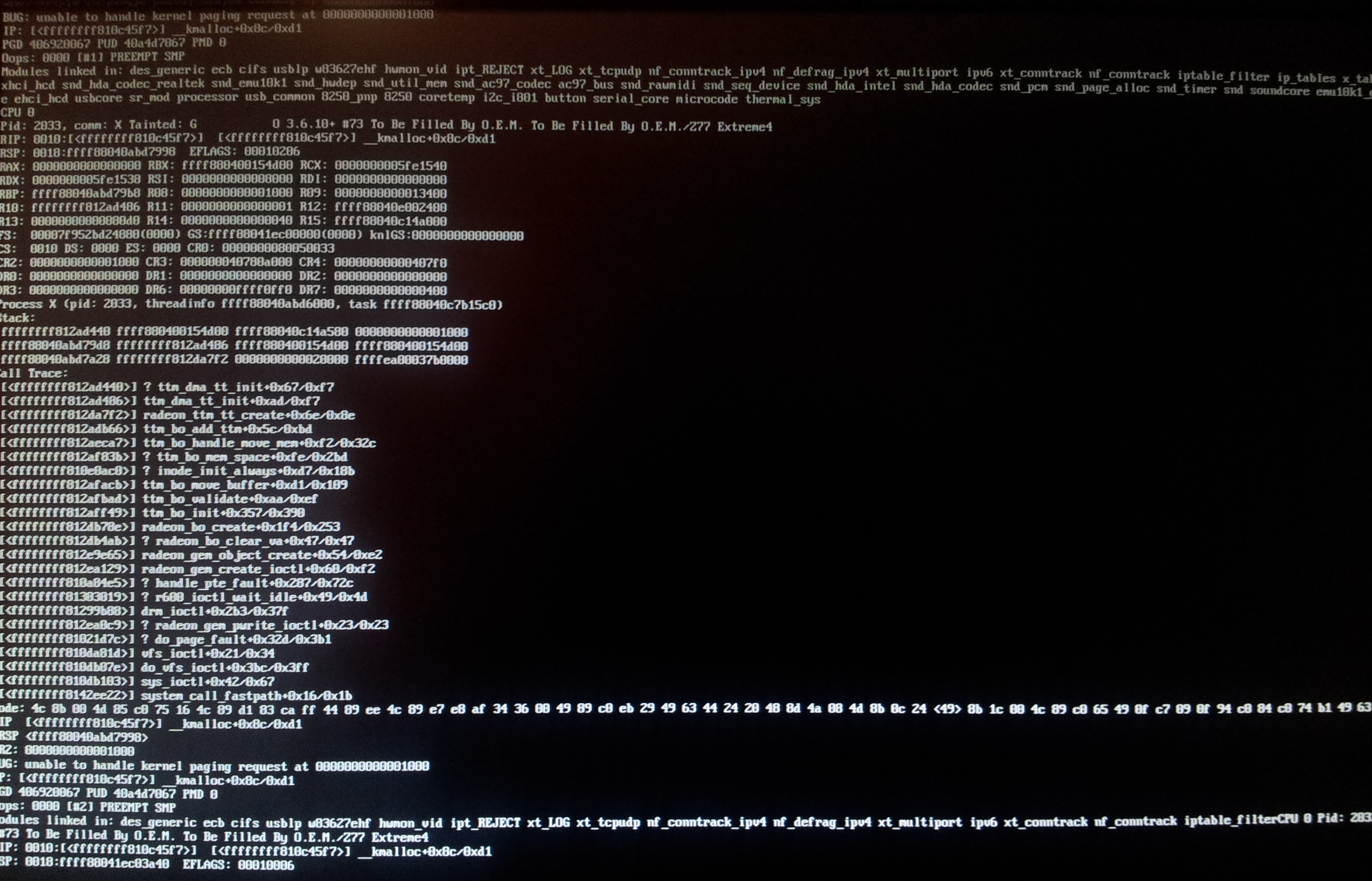 Created attachment 72395 [details] Picture taken with camera showing the crash. System crashes. Picture attached.