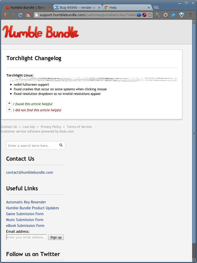This is what I use to reproduce a problem from a fresh reboot (drm-intel-nightly 68c6cd3f1312965698b2af5bb08e15807ce9ae2d, DDX 7b1a5024df96070bab70744ad7e7d78a41fb0f72 - current): - Open Google Chrome (Version 28.0.1500.71) - Go to http://support.humblebundle.com/customer/portal/articles/754604-torchlight-changelog - Try selecting text in last three bullet points - If the right edge of the white bounding box that surronds the main content in the page is obscured by making the window narrower, the problem when selecting text goes away - Attached image for reference (bug-chrome.png) - Attached Xorg.log