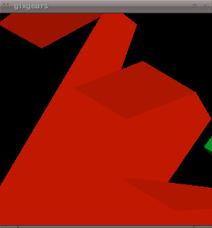 When glxgears starts, it seems to display one of the gears in extreme close up. Resizing the window fixes the problem.