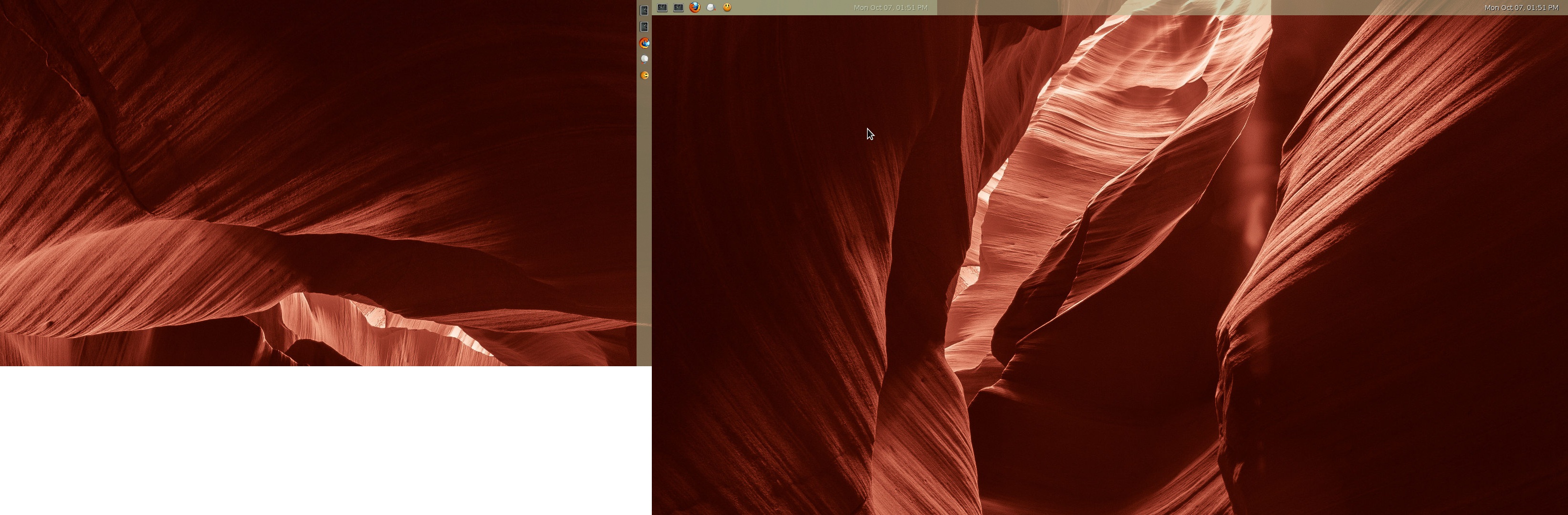 Created attachment 87292 [details] multi-display reveals even more. Furthermore, we can see that attaching another display, the panel bar from the transformed primary display "bleeds" over onto the second display's panel bar.