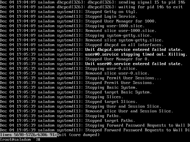 Created attachment 87808 [details] output of console [delay 90 sec] (systemd.journald.forward_to_console)