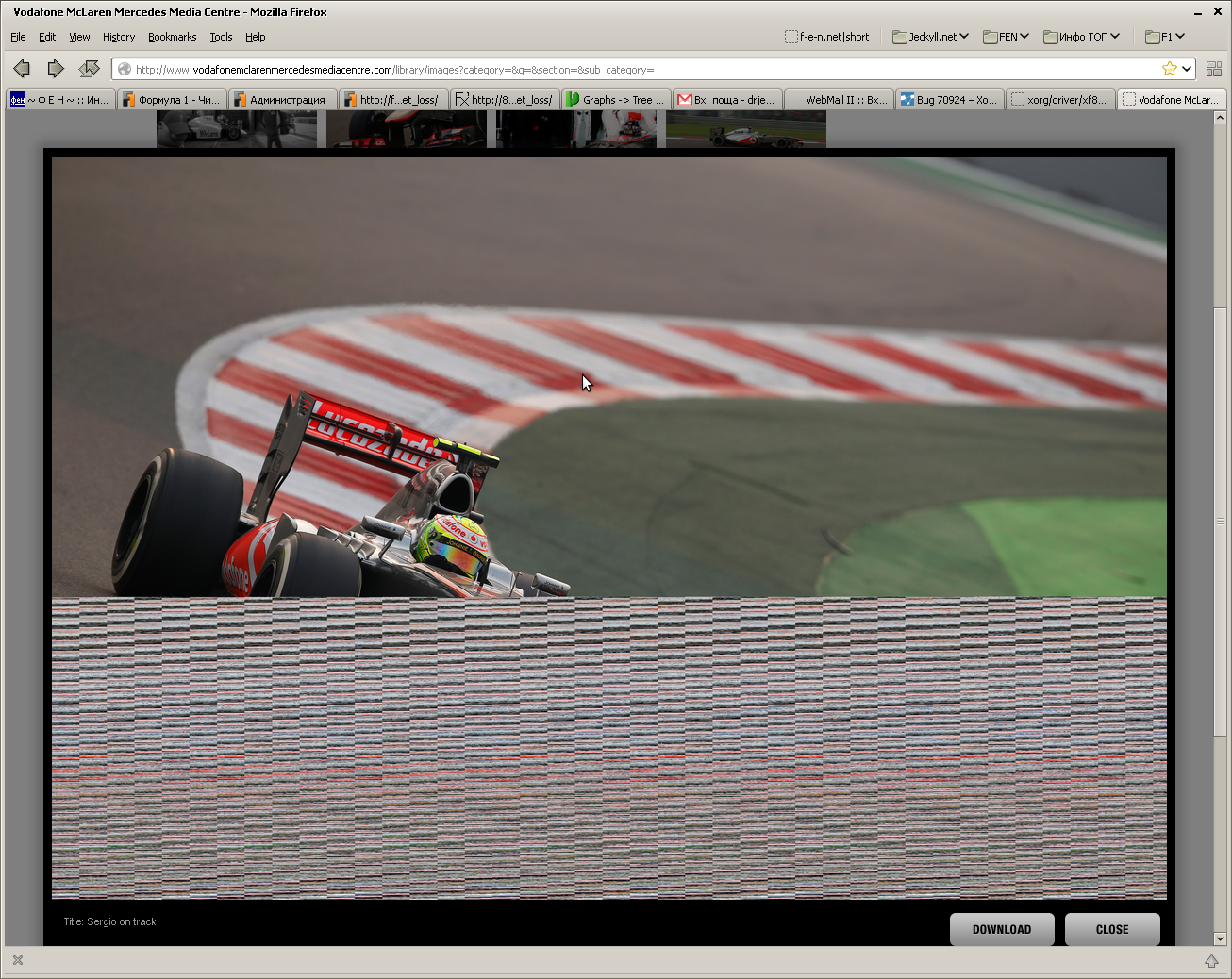 Created attachment 88692 [details] wrong image You can see wrong image on the left and with red circle correct image. I have to right click on wrong image - select view image - it is shown again wrong and then I have to click reload to see actual image. I can see couple of distortions i.e. "skewed" images and other funny "effects" also :) And I'm not sure if it is firefox problem or not. It is Firefox 25 from their site so ... Texts are sometimes also not displayed properly but it is impossible for me to make screen shot - they are redisplayed every time i bring terminal or gnome-screen shot window :)