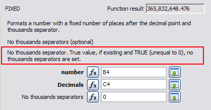 Do you mean replacing: No thousands separator. True value, if existing and TRUE (unequal to 0), no thousands separators are set. with Thousands separator. If 0 or omitted the locale group separator is used else the separator is suppressed. ??