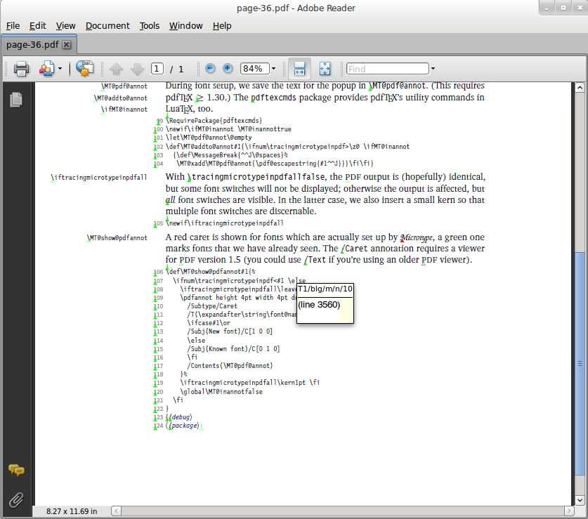 Created attachment 92737 [details] Screenshot showing Acroread rendering the page The screenshot shows how Acroread renders the page. The green symbols are the caret annotations.
