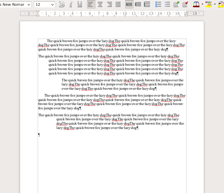 If you have text with different indentation (see attached screen1.png), and highlight the text to uniformize the indentation, the adjustment arrows in the ruler disappear, and hence it is not possible to adjust the indentation (see attached screen2.png). It would be nice if the adjustment arrows could be displayed shaded if the indentation of the selected text is different, so that the user sees that he is dealing with different indentations, but has the chance to uniformize them.