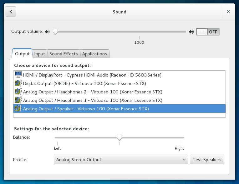 (In reply to comment #8) > Did you check all the attachments? I did mean left/right balance. The > overall volume issue is just another thing that I thought might be related. Oops, I did look at them all, but apparently I didn't pay enough attention to the balance slider (I guess I somehow made the conclusion after the first three pictures that the balance slider isn't changing). > I doubt if it's a duplicate. Of course they are of similar nature (well > volume restore), but the actual sympton seems to be quite different to me, > both the overall AND the balance one. Yes, this appears to be a separate bug, so reopening. Can you reproduce this with these steps: 1) Disable autospawning: echo autospawn = no >> ~/.config/pulse/client.conf 2) Stop pulseaudio: killall pulseaudio 3) Remove the device volume database: rm ~/.config/pulse/*device-volumes* 4) Start pulseaudio in a terminal: pulseaudio -vvv 5) Do what you did when making those screeshots (switch the output once, set the volume). 6) Stop pulseaudio with Ctrl-C and save the log output. 7) Start pulseaudio again: pulseaudio -vvv 8) Check if the balance is wrong. If it is wrong, attach the logs from the two pulseaudio runs to this bug. If it's not wrong, then this is more mysterious.