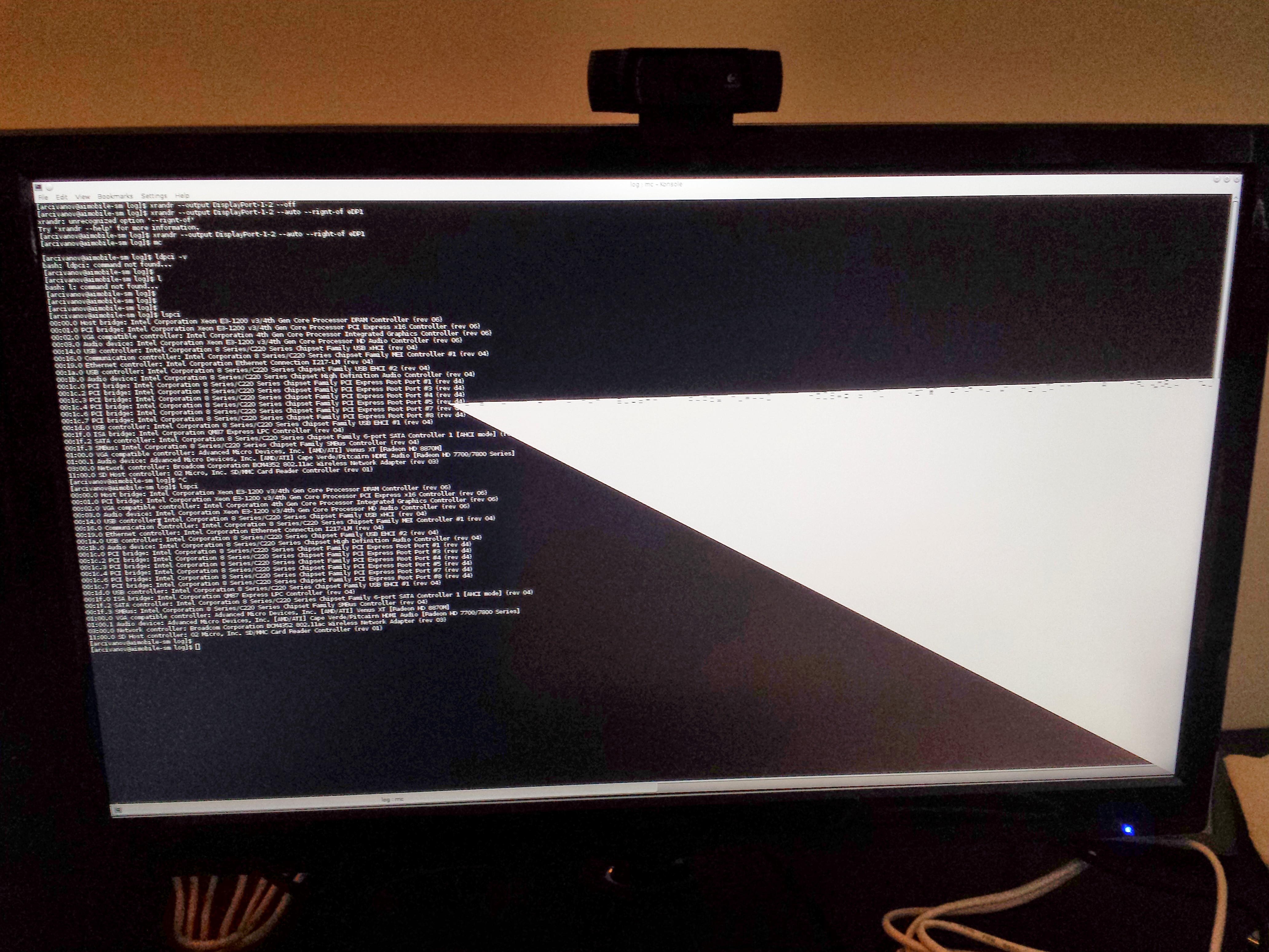 $ xrandr --verbose Screen 0: minimum 320 x 200, current 1920 x 1080, maximum 8192 x 8192 eDP1 connected 1920x1080+0+0 (0xa1) normal (normal left inverted right x axis y axis) 344mm x 194mm Identifier: 0x9c Timestamp: 9781 Subpixel: unknown Gamma: 1.0:1.0:1.0 Brightness: 1.0 Clones: CRTC: 0 CRTCs: 0 1 2 Transform: 1.000000 0.000000 0.000000 0.000000 1.000000 0.000000 0.000000 0.000000 1.000000 filter: EDID: 00ffffffffffff0030e42c0300000000 00150104902213780aaf559c5b529626 0e505400000001010101010101010101 0101010101014c3680a070381f402040 360058c210000018323280b072389640 a0f0e80058c210000018000000fe0044 4339594a803135365746430a00000000 000041319e0000000002010a20200084 BACKLIGHT: 95 range: (0, 95) Backlight: 95 range: (0, 95) scaling mode: Full aspect supported: NoneFullCenterFull aspect Broadcast RGB: Automatic supported: AutomaticFullLimited 16:235 audio: auto supported: force-dvioffautoon 1920x1080 (0xa1) 139.0MHz -HSync -VSync *current +preferred h: width 1920 start 1952 end 2016 total 2080 skew 0 clock 66.8KHz v: height 1080 start 1083 end 1089 total 1111 clock 60.2Hz 1920x1080 (0xa2) 128.5MHz -HSync -VSync h: width 1920 start 2080 end 2320 total 2608 skew 0 clock 49.3KHz v: height 1080 start 1094 end 1102 total 1230 clock 40.1Hz 1400x1050 (0xa3) 122.0MHz +HSync +VSync h: width 1400 start 1488 end 1640 total 1880 skew 0 clock 64.9KHz v: height 1050 start 1052 end 1064 total 1082 clock 60.0Hz 1280x1024 (0x6a) 108.0MHz +HSync +VSync h: width 1280 start 1328 end 1440 total 1688 skew 0 clock 64.0KHz v: height 1024 start 1025 end 1028 total 1066 clock 60.0Hz 1280x960 (0xa4) 108.0MHz +HSync +VSync h: width 1280 start 1376 end 1488 total 1800 skew 0 clock 60.0KHz v: height 960 start 961 end 964 total 1000 clock 60.0Hz 1024x768 (0x70) 65.0MHz -HSync -VSync h: width 1024 start 1048 end 1184 total 1344 skew 0 clock 48.4KHz v: height 768 start 771 end 777 total 806 clock 60.0Hz 800x600 (0x73) 40.0MHz +HSync +VSync h: width 800 start 840 end 968 total 1056 skew 0 clock 37.9KHz v: height 600 start 601 end 605 total 628 clock 60.3Hz 800x600 (0xa5) 36.0MHz +HSync +VSync h: width 800 start 824 end 896 total 1024 skew 0 clock 35.2KHz v: height 600 start 601 end 603 total 625 clock 56.2Hz 640x480 (0x79) 25.2MHz -HSync -VSync h: width 640 start 656 end 752 total 800 skew 0 clock 31.5KHz v: height 480 start 490 end 492 total 525 clock 59.9Hz VGA1 disconnected (normal left inverted right x axis y axis) Identifier: 0x9d Timestamp: 9781 Subpixel: unknown Clones: CRTCs: 0 1 2 Transform: 1.000000 0.000000 0.000000 0.000000 1.000000 0.000000 0.000000 0.000000 1.000000 filter: DP1 disconnected (normal left inverted right x axis y axis) Identifier: 0x9e Timestamp: 9781 Subpixel: unknown Clones: HDMI1 CRTCs: 0 1 2 Transform: 1.000000 0.000000 0.000000 0.000000 1.000000 0.000000 0.000000 0.000000 1.000000 filter: Broadcast RGB: Automatic supported: AutomaticFullLimited 16:235 audio: auto supported: force-dvioffautoon HDMI1 disconnected (normal left inverted right x axis y axis) Identifier: 0x9f Timestamp: 9781 Subpixel: unknown Clones: DP1 CRTCs: 0 1 2 Transform: 1.000000 0.000000 0.000000 0.000000 1.000000 0.000000 0.000000 0.000000 1.000000 filter: Broadcast RGB: Automatic supported: AutomaticFullLimited 16:235 audio: auto supported: force-dvioffautoon DisplayPort-1-1 disconnected (normal left inverted right x axis y axis) Identifier: 0x55 Timestamp: 2428131 Subpixel: horizontal rgb Clones: CRTCs: 3 4 5 6 7 8 Transform: 1.000000 0.000000 0.000000 0.000000 1.000000 0.000000 0.000000 0.000000 1.000000 filter: dither: off supported: offon audio: auto supported: offonauto underscan vborder: 0 range: (0, 128) underscan hborder: 0 range: (0, 128) underscan: off supported: offonauto coherent: 1 range: (0, 1) DisplayPort-1-2 connected (normal left inverted right x axis y axis) Identifier: 0x56 Timestamp: 2428131 Subpixel: horizontal rgb Clones: CRTCs: 3 4 5 6 7 8 Transform: 1.000000 0.000000 0.000000 0.000000 1.000000 0.000000 0.000000 0.000000 1.000000 filter: EDID: 00ffffffffffff00232f57a000000000 0a170104803c2278288e05ad4f33b026 0d50542108008100b30081c0d140a940 8180a9c0d1c0565e00a0a0a029503020 350055502100001a283c80a070b02340 3020260055312100001a000000fd0032 781d5f1e0000000000000000000000fc 00444953504c415920504f52540a01ca 020316f149908384853f312f2e062309 070783010000023a8018382d40582c25 0055502100001e011d8018711c162058 2c250055502100009e011d007251d01e 206e28550055502100001e8c0ad08a20 e02d10103e9600555021000018023a80 d072382d40102c458009252100001e72 382d40102c458009252100001e00be00 dither: off supported: offon audio: auto supported: offonauto underscan vborder: 0 range: (0, 128) underscan hborder: 0 range: (0, 128) underscan: off supported: offonauto coherent: 1 range: (0, 1) 2560x1440 (0x5a) 241.5MHz +HSync -VSync +preferred h: width 2560 start 2608 end 2640 total 2720 skew 0 clock 88.8KHz v: height 1440 start 1443 end 1448 total 1481 clock 60.0Hz 3442x1566i (0x10d) 0.3MHz -HSync +VSync Interlace h: width 3442 start 3738 end 4079 total 4080 skew 0 clock 0.1KHz v: height 1566 start 1582 end 1598 total 5182 clock 0.0Hz 1920x1440 (0x5b) 234.0MHz -HSync +VSync h: width 1920 start 2048 end 2256 total 2600 skew 0 clock 90.0KHz v: height 1440 start 1441 end 1444 total 1500 clock 60.0Hz 1920x1200 (0x5c) 154.0MHz +HSync -VSync h: width 1920 start 1968 end 2000 total 2080 skew 0 clock 74.0KHz v: height 1200 start 1202 end 1208 total 1235 clock 60.0Hz 1920x1080 (0x5d) 297.0MHz +HSync +VSync h: width 1920 start 2008 end 2052 total 2200 skew 0 clock 135.0KHz v: height 1080 start 1084 end 1089 total 1125 clock 120.0Hz 1920x1080 (0x5e) 296.7MHz +HSync +VSync h: width 1920 start 2008 end 2052 total 2200 skew 0 clock 134.9KHz v: height 1080 start 1084 end 1089 total 1125 clock 119.9Hz 1920x1080 (0x10e) 172.8MHz -HSync +VSync h: width 1920 start 2040 end 2248 total 2576 skew 0 clock 67.1KHz v: height 1080 start 1081 end 1084 total 1118 clock 60.0Hz 1920x1080i (0x5f) 148.5MHz +HSync +VSync Interlace h: width 1920 start 2008 end 2052 tot