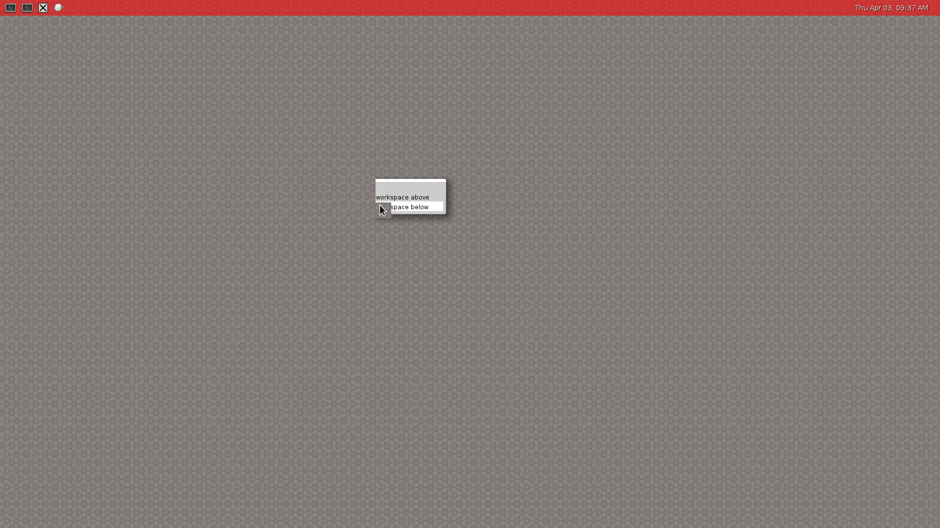 Steps to Reproduce: =================== 1. Activate workspaces by uncommenting num-workspaces=6 in weston.ini 2. Launch weston 3. Launch a surface : weston-flower 4. Right click on the surface to activate context menu 5. Click on “Move to workspace below”. Observe cropped context menu still rendering. Software stack: =============== wayland (master) heads/master-0-g1bf13ae drm (master) heads/master-0-g1cb5fc7 mesa (master) heads/master-0-g64278b3 libva (master) heads/master-0-ge30e29a intel-driver (master) heads/master-0-g75a7b09 cairo (master) heads/master-0-gbb17403 libinput (master) heads/master-0-ge49a988 weston (master) heads/master-0-gfe9671e gstreamer (master) heads/master-0-gf85ce91