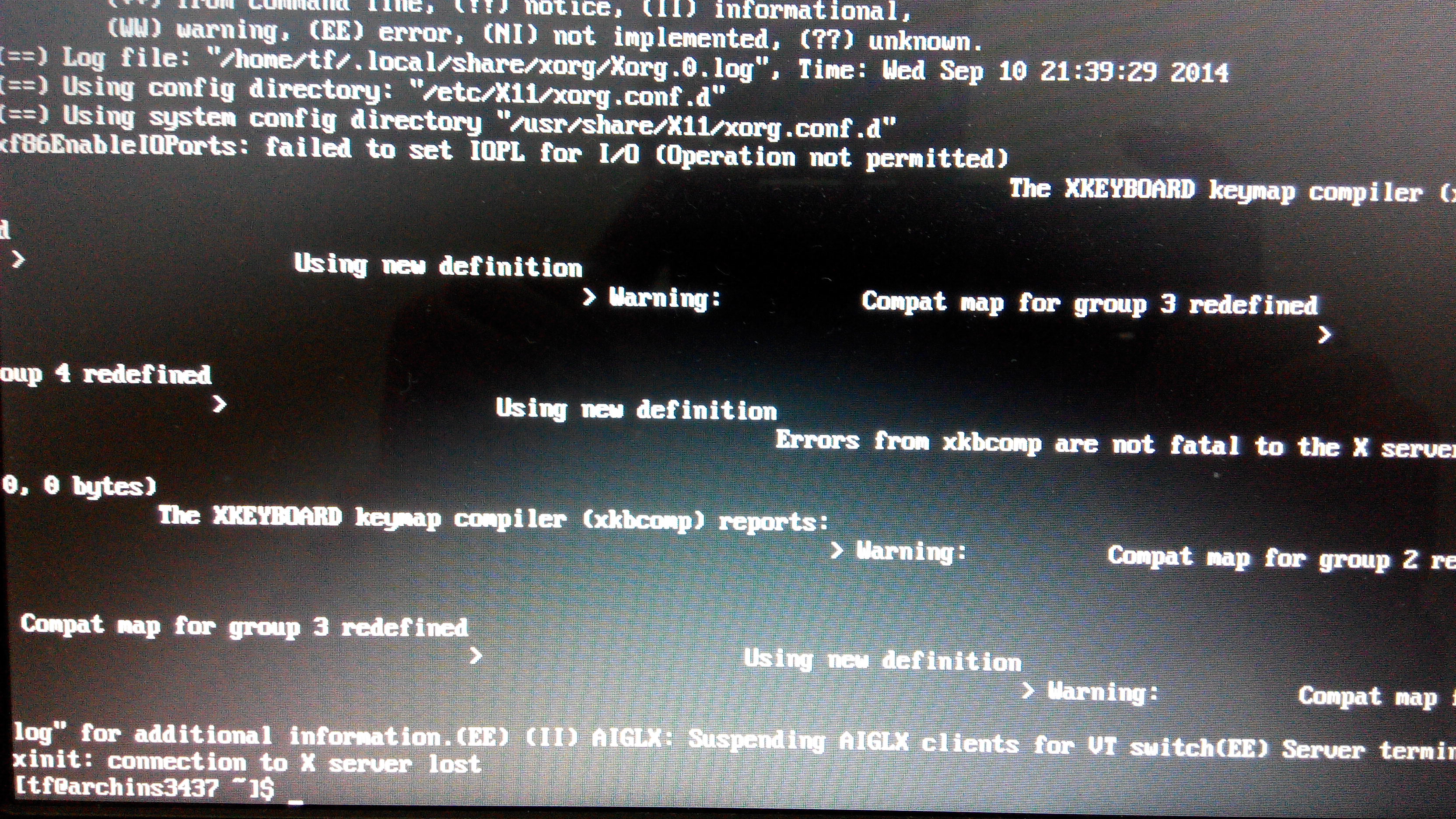 Sep 11 14:51:04 archins3437 gdm-Xorg-:0[1247]: (II) UnloadModule: "evdev" Sep 11 14:51:04 archins3437 gdm-Xorg-:0[1247]: (II) evdev: Dell WMI hotkeys: Close Sep 11 14:50:34 archins3437 gdm-Xorg-:0[504]: _sna_blt_fill_boxes: ffffff x 1 Sep 11 14:50:34 archins3437 gdm-Xorg-:0[504]: box_from_seg: seg=(1,0),(1,124); box=(1,0),(2,124) Sep 11 14:50:34 archins3437 gdm-Xorg-:0[504]: __kgem_bo_mark_dirty: handle=19 (proxy? 0) Sep 11 14:50:34 archins3437 gdm-Xorg-:0[504]: kgem_add_handle: handle=19, index=0 Sep 11 14:50:34 archins3437 gdm-Xorg-:0[504]: kgem_add_reloc: handle=19, pos=4, delta=0, domains=28002 You wouldn't happen to have the missing 30s? /o\