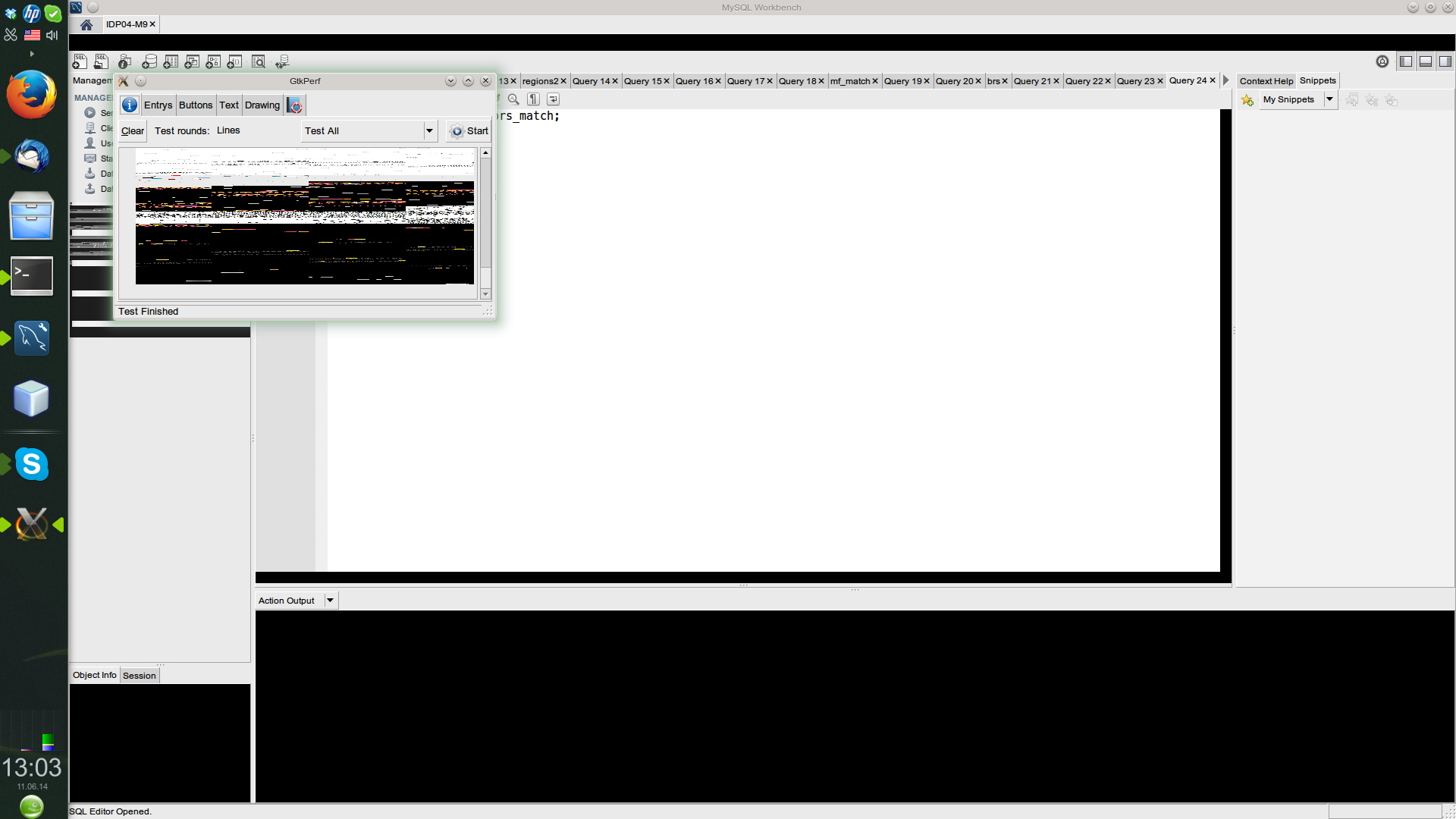 Created attachment 100870 [details] Screen garbage with blt It seems that all GTK applications affected except Firefox (which is barely GTK this days): gtkperf, mysql-workbench, GIMP If i use Xrender for composting - area where left panel drops shadow sometimes forget to update. Also http://ie.microsoft.com/testdrive/Performance/ParticleAcceleration/ results dropped from 24-25fps to 14-15 in Firefox 33.0a1