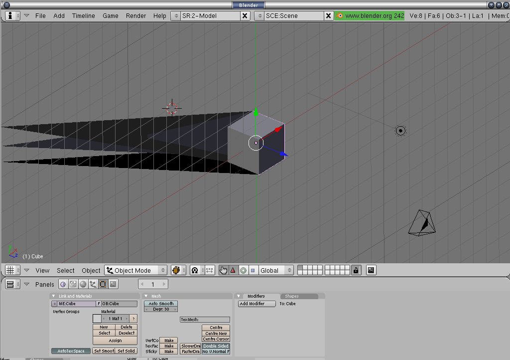 (In reply to comment #5) > Another Blender screenshot, here 3 vertices (out of 8) are shifted. Yes I can confirm it. I think it is bug somewhere in r128/dri. (mesa ver. 6.5.2 (maybe some gentoo patches :-, )) I found out that this deformation is caused in ´src/mesa/tnl_dd/t_dd_tritmp.h´: line 484: VERT_SET_RGBA( v[0], vbcolor[e0] ); this macro is defined in ´src/mesa/drivers/dri/r128/r128_tris.c´: line 177: #define VERT_SET_RGBA( v, c ) \ do { \ r128_color_t *color = (r128_color_t *)&((v)->ui[coloroffset]); \ UNCLAMPED_FLOAT_TO_UBYTE(color->red, (c)[0]); \ UNCLAMPED_FLOAT_TO_UBYTE(color->green, (c)[1]); \ UNCLAMPED_FLOAT_TO_UBYTE(color->blue, (c)[2]); \ UNCLAMPED_FLOAT_TO_UBYTE(color->alpha, (c)[3]); \ } while (0) This isn´n anything unusual. But the ´color´ pointer points to same position where the ´x´ coord of vertex ´v´ is stored (v->v.x or v->vt.x). So this colors (unsigned byte) are written to x coordinate (float) and this is the mismatch. I think the 4th (last one) (3th if counting from zero) vertex of QUAD is rewritten by color data because it thinks that there are only 3 vertices... If you change the ´coloroffset´ (inc by 4 floats (x,y,z,w)) an another vertex (probably the next) will be damaged. I spend hours finding where is the mistake, haven´t found it yet. Maybe someone from DRI-developers could find it... (please :) )