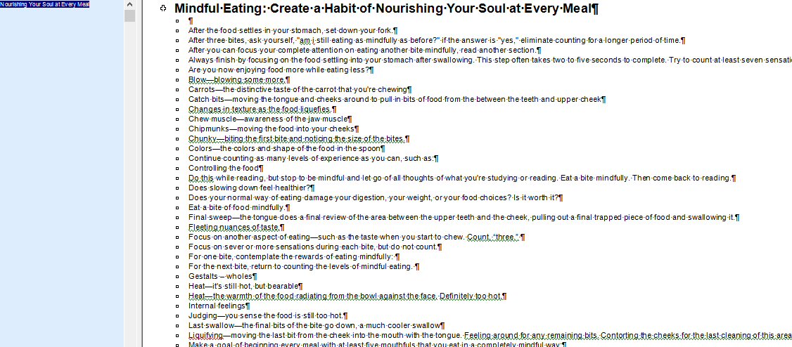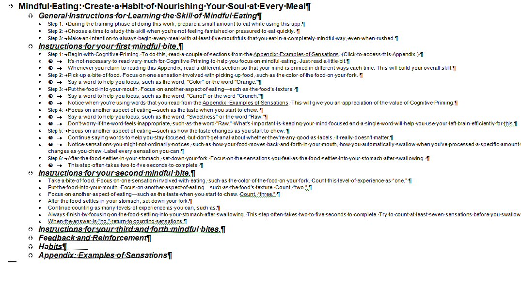 I've just added the various steps along the way, including the final document as a pdf, which I produced in three hours. I'm not fast enough to do this five page document in three hours without the outliner as demonstrated in the screenshots. This is not a document that I will use. I wrote it for demonstration purposes. I have more thinking to do before turning it into an app with JS. I may be months away from that. I'm not a good enough programmer to produce device ready apps yet. What I produce can only be viewed on a computer. Here's an example of an app I wrote which uses chi energy for Conscious Evolution: http://www.grokwisdom.org/apps/boosting.php Nonetheless, this is an example of a final destination for my writing. I have so much work to do on the various elements of my project that I can't waste time trying to write stuff using LibreOffice, when I need an outliner to produce material quickly. I believe that producing the attached five page document without an outliner would have taken me six to eight hours, rather than the three I took with Word. What I need as a writer is the same as a developer asking for an IDE for efficient programming. What you offer me as a writer is the equivalent to giving me WordPad. Until you create a tool that works efficiently, and allows me to bang out a five-page doc in three hours, I consider it substandard. I can't use it for my work. I'm too busy to waste time trying to monkey around with it. For me, it's just a waste of time to use LibreOffice. Like I said, my attached pdf doc is not ready to become an app. I was still in the brainstorming, research phase while working on other things. This pdf doc was in the pipeline, but I decided to take it to this next step to provide Jay Phillips with the sample doc he wanted, as well as screen shots that show how I use an outliner to produce the final pdf in three short hours. Even if this feature request is a duplicate, I'm reopening it to provide the information that Jay requested and to emphasize that you've been marking such requests as duplicates and then ignoring them for years. This means that for me, your product IS LITERALLY UNUSABLE. DO I HAVE SOMEONE'S ATTENTION YET?