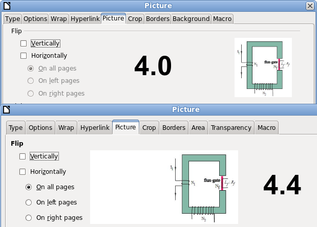 Created attachment 101978 [details] picture tab 4.0 VS 4.4 Since 4.1, the Picture tab of the Picture dialog has a large extra white padding to its left to center an image in the tab. This looks fine when the dialog box background is white, like in windows, but when its grey like in linux, it doesnt look good. Tested this on Linux Mint and Ubuntu.