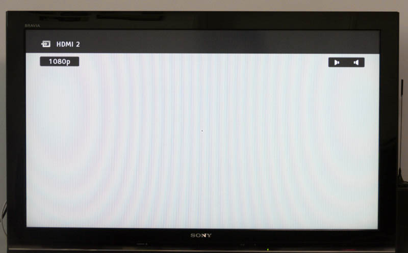 Created attachment 104476 [details] Picture of the screen Screen with black/grey stripes, mouse cursor on the middle.