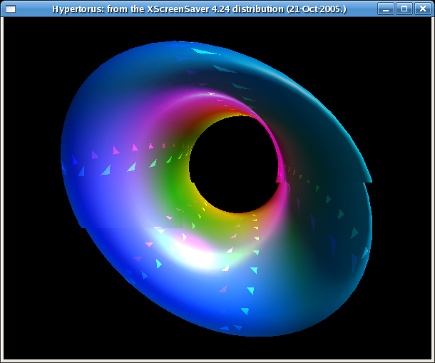 Created attachment 7677 [details] xscreensaver 4.24, "hypertorus -solid -transp" I'm not sure if this is related to the vertex program problem, but I'm sure that those triangular artifacts shouldn't be there.