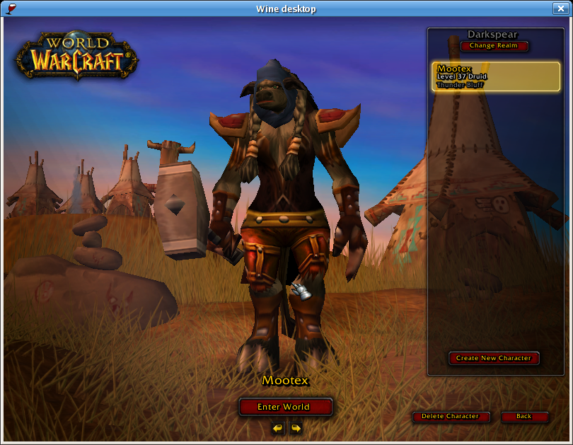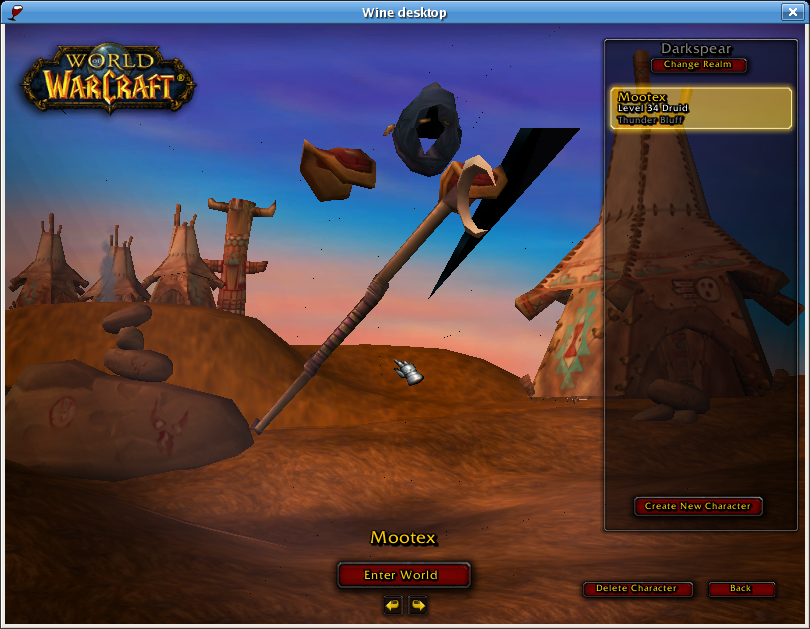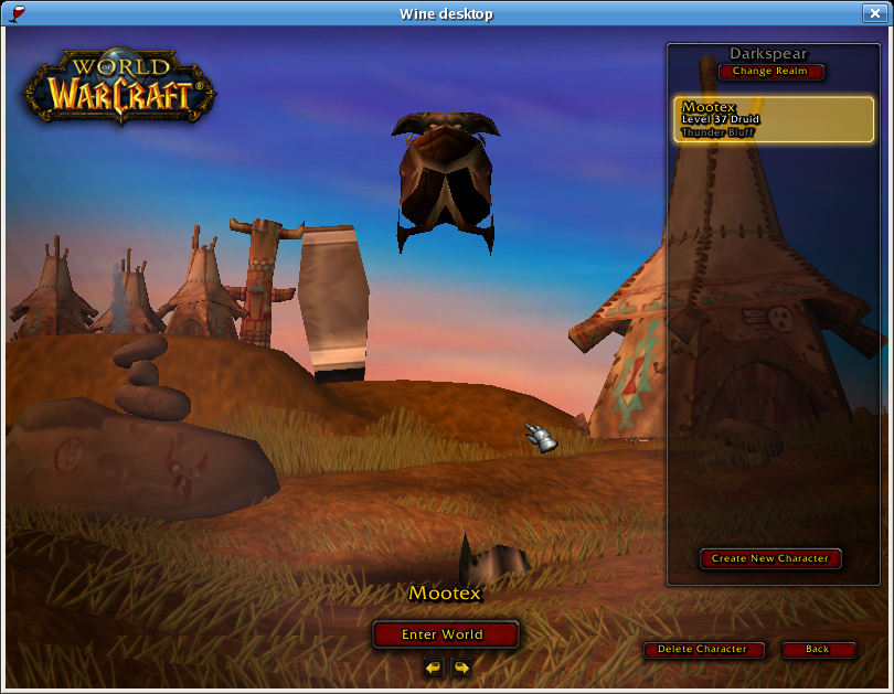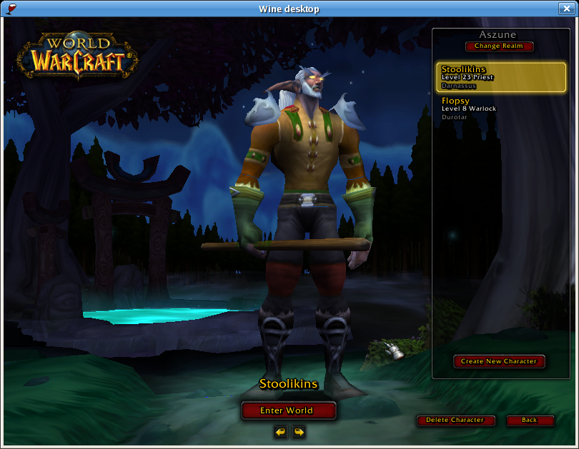 Created attachment 8098 [details] Actually, the character screen looks like this now! Oops! I had left GL_NV_vertex_program enabled when I attached those last two screen shots showing the login artifacts and the partially rendered character. The character selection screen actually looks like this now! (Seems perfect to me :-).) I can't progress to the game proper yet because of a Wine bug, but will keep you posted...