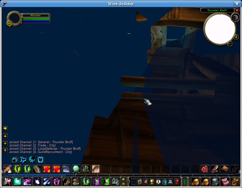 *Sigh*, I can't test the latest Mesa any more. I tried replacing r200_dri.so, libGL.so.1.2 and libGLU.so.1 with the latest versions but even glxinfo crashed the X-server immediately. So it looks like even FC6's version of XOrg isn't new enough any more. Maybe I'll have better luck when I upgrade to FC7...? As an aside, how much more hardware acceleration is left to be squeezed out of the R200? I'm getting about 10-15 fps in WoW without either VPs or VBOs right now, and it's very playable. Enabling VPs with my current r200_dri.so makes the game feel sluggish - I don't know why. I was wondering if this might be fixed by the recent "don't calculate fog for everything" patch I saw go sailing past. There are also gaps in the rendering on the character selection screen, but maybe a recent patch has fixed that too? The WoW forum for Wine users recommends that fglrx users turn GL_ARB_vertex_buffer_object off "for performance reasons". A comment on Blizzard's OpenGL code, I believe... ;-).
