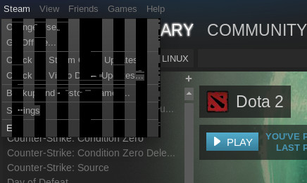 Steam UI and Dota2 loading screen have black tiles in them, attached screenshot tells more than words. Tested this on HSW machine, 64bit Ubuntu 14.04 and 32bit Mesa (dota2 is 32bit) Bisected to following commit: --- 8< --- commit 2f28a0dc23165123cf1e8b5942acad37878edd8a Author: Kristian Høgsberg <krh@bitplanet.net> Date: Mon Jul 7 16:44:58 2014 -0700 i965: Implement fast color clears using meta operations This patch uses the infrastructure put in place by previous patches to implement fast color clears and replicated color clears in terms of meta operations. This works all the way back to gen7 where fast clear was introduced and adds support for fast clear on gen8. It replaces the blorp path completely and improves on a few cases. Layered clears are now done using instanced rendering and multiple render-target clears use a MRT shader with rep16 writes. Signed-off-by: Kristian Høgsberg <krh@bitplanet.net> Acked-by: Kenneth Graunke <kenneth@whitecape.org>