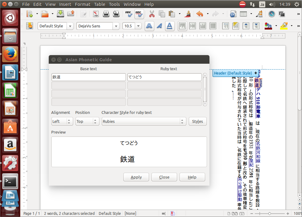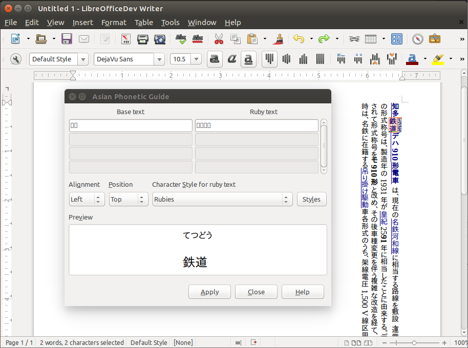Bugzilla – Bug 82849UI: Japanese text not rendered in part of "Asian Phonetic Guide" dialog in 4.4 master on LinuxLast modified: 2014-08-21 12:32:35 UTC