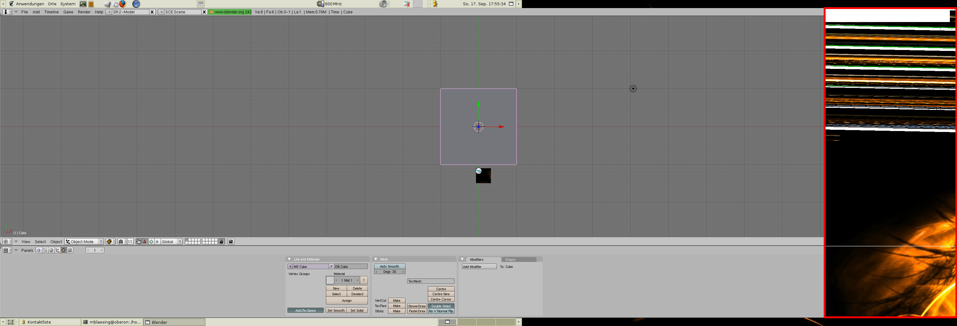 I run a dualhead setup with a desktop of 3080x1050 (thats the biggest setup, I run also smaller setups). This is the card in the notebook: ATI Technologies Inc RV350 [Mobility Radeon 9600 M10] In Bug 8299 i mentioned, that the rendering of blender is disstored (see first attachment). It can easily be reproduced when runnig glxgears - just move it over or onto the invisible border (see second attachment). Aapo Tahkola gives in comment #10 of Bug 8299 some hints which might be good starting points.