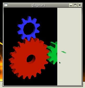 I'm not sure whether I understand this correctly. If it would be just a matter of multiple tiles to be rendered, then I don't understand, why the glxgears application does not work behind the magical barrier. I would already be happy, if each 3D application could be as large as 1680x1050 and your explanation sounds as if this should be the case. But it isn't, as you can see in the rendering of glxgears on the barrier.