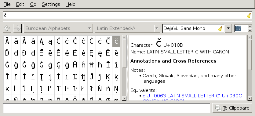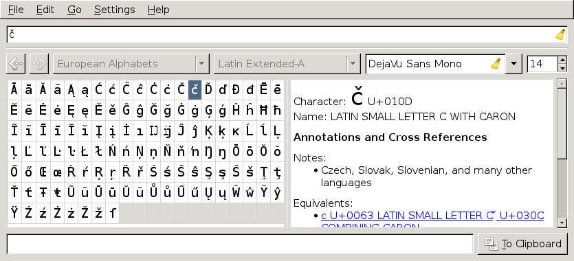 Created attachment 115990 [details] c with caron with size 14 pt style book - does show the problem in LXTerminal