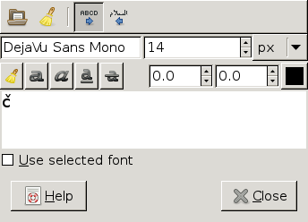Created attachment 115986 [details] c with caron with size 14 pt in GIMP's text editor