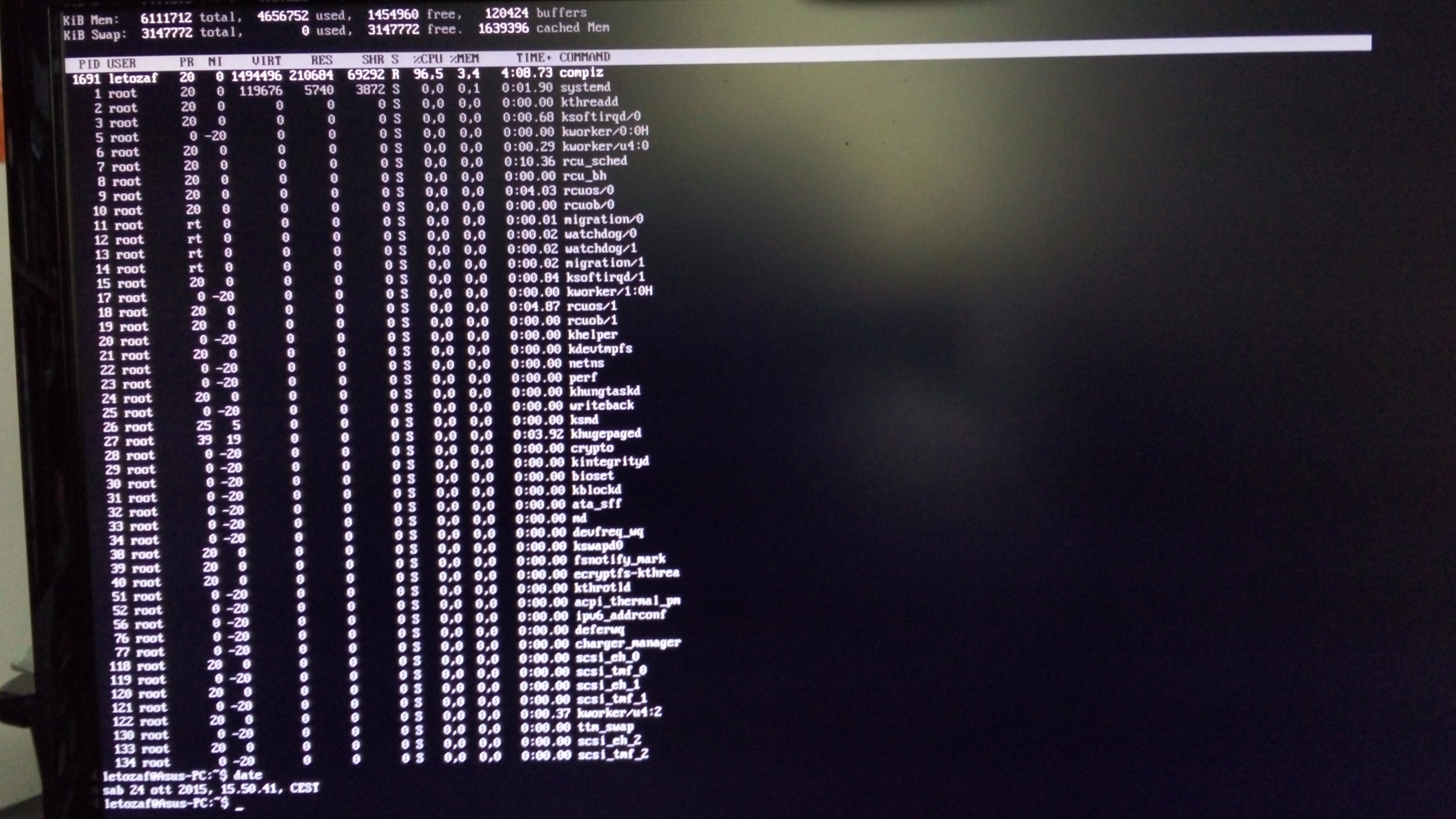 Created attachment 119169 [details] Top screen shot n. 1 Top command while desktop is freezed with compiz process using 100% (more or less) CPU