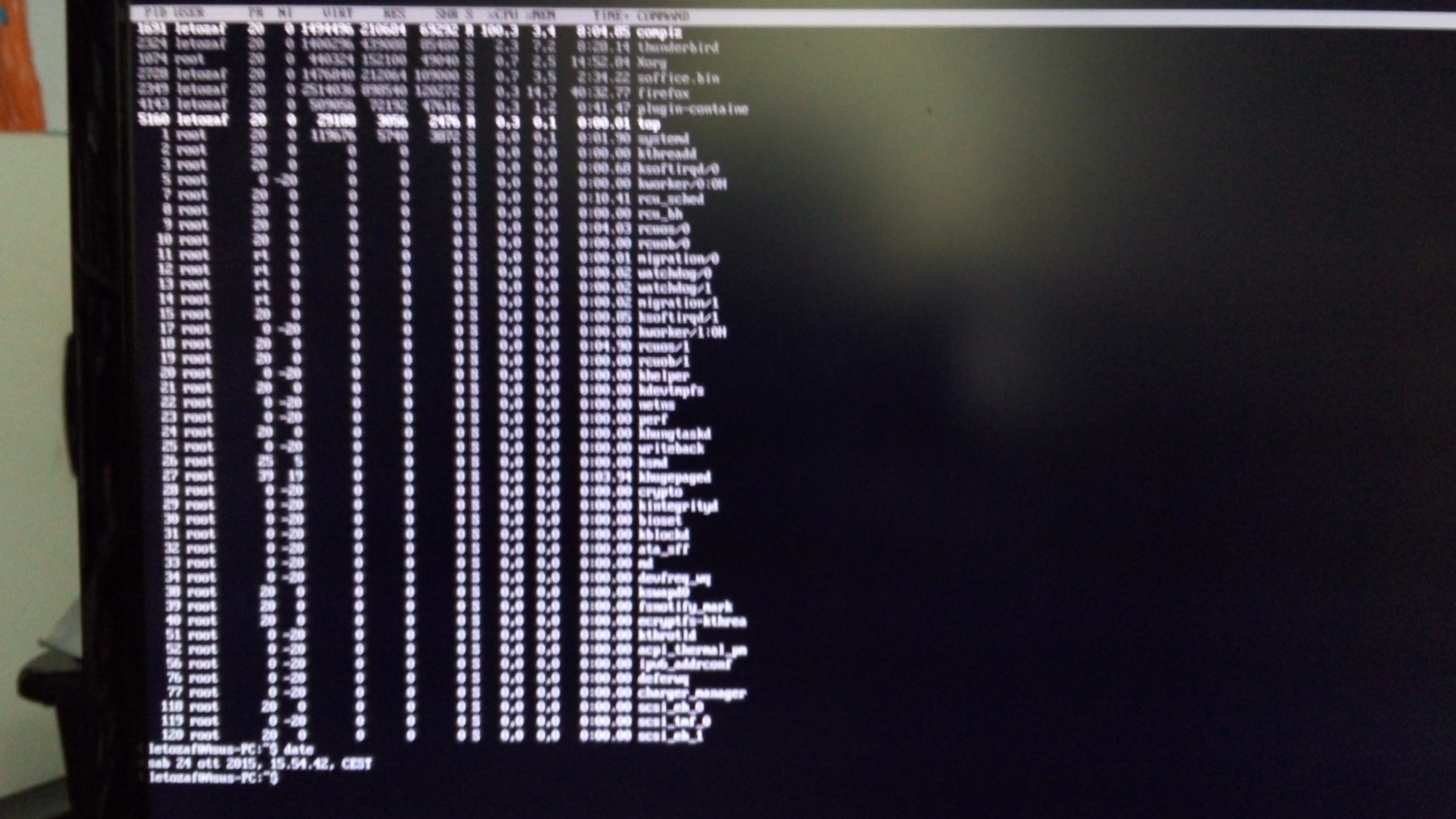 (In reply to Ilia Mirkin from comment #5) > Please give the patch at > http://lists.freedesktop.org/archives/nouveau/2015-October/022732.html a > shot -- it will hopefully help with the suspend/resume issues, and who knows > -- perhaps even fix these -- you only have 256MB of vram, so similar > situations will occur as with suspend/resume, with buffers getting swapped > out. Ok I will give it a shot and let you know. Meanwhile it has just happened again, I will attach two screenshots with top command and one with dmesg, just for you info.