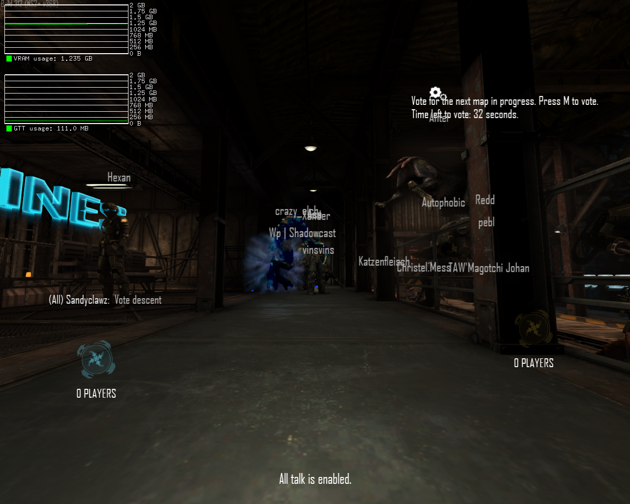 I just want to report that with new mesa and cache NS2 runs as smooth as butter, thanks to the devs! System: Host: cray Kernel: 4.12.4-1-CHAKRA x86_64 (64 bit) Desktop: KDE Plasma 5.10.4 Distro: Chakra Machine: Device: desktop Mobo: ASUSTeK model: A88XM-PLUS v: Rev X.0x UEFI: American Megatrends v: 3003 date: 03/04/2017 CPU: Quad core AMD A10-7850K Radeon R7 12 Compute Cores 4C+8G (-MCP-) cache: 8192 KB clock speeds: max: 4200 MHz 1: 4200 MHz 2: 3000 MHz 3: 3000 MHz 4: 3000 MHz Graphics: Card: Advanced Micro Devices [AMD/ATI] Fiji [Radeon R9 FURY / NANO Series] Display Server: x11 (X.Org 1.19.3) driver: amdgpu Resolution: 2560x1440@119.88hz OpenGL: renderer: Gallium 0.4 on AMD FIJI (DRM 3.15.0 / 4.12.4-1-CHAKRA, LLVM 4.0.1) version: 4.5 Mesa 17.1.5 Audio: Card-1 Advanced Micro Devices [AMD] FCH Azalia Controller driver: snd_hda_intel Card-2 Advanced Micro Devices [AMD/ATI] Fiji HDMI/DP Audio Controller driver: snd_hda_intel Sound: Advanced Linux Sound Architecture v: k4.12.4-1-CHAKRA Network: Card: Realtek RTL8111/8168/8411 PCI Express Gigabit Ethernet Sensors: System Temperatures: cpu: 44.0C mobo: 34.0C gpu: 41.0 Fan Speeds (in rpm): fan-1: 826 fan-2: 841 fan-3: 717 Info: Processes: 213 Uptime: 11:34 Memory: 4278.6/15994.4MB Client: Shell (bash) inxi: 2.3.23