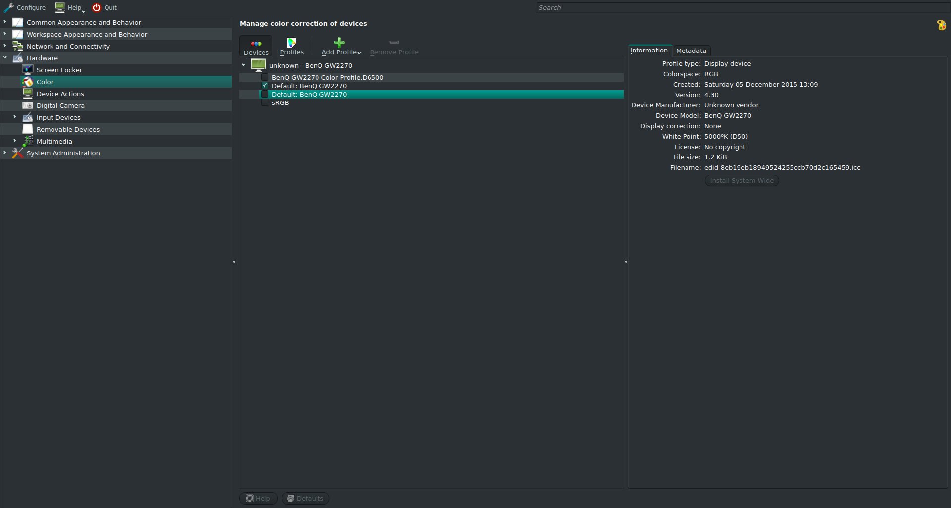dispcalGUI not loading wanky profile isn't the worst issue, the worst issue that profile having 5000K whitepoint for 6460K monitor. I also clearly have stated that I use LXQt for myself and my live distro. And even if I wouldn't, you shouldn't DE-lock something that important.
