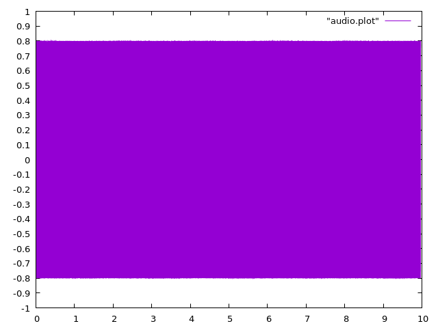 #!/bin/bash # # generate_waveform.sh - Record from a PulseAudio sink monitor and # plot the resulting waveform using sox and gnuplot # # usage: # - generate_waveform.sh alsa - Plot from ALSA sink monitor # - generate_waveform.sh null - Plot from NULL sink monitor # # notes: # - Before usage, set ALSA_SINK_NAME to system-appropriate value # - If not available, a NULL_5.1 sink is automatically created # set -o errexit set -o nounset PACTL=pactl PACAT=pacat PAREC=parec NULL_SINK_NAME=NULL_5.1 NULL_SINK_MONITOR=${NULL_SINK_NAME}.monitor ALSA_SINK_NAME=alsa_output.pci-0000_00_14.2.analog-stereo ALSA_SINK_MONITOR=${ALSA_SINK_NAME}.monitor OUTPUT_WAV_FILE=audio.wav OUTPUT_DAT_FILE=audio.dat OUTPUT_PLOT_FILE=audio.plot OUTPUT_PNG_FILE=audio.png GNUPLOT_SCRIPT=plot_audio.gp RECORD_PERIOD=10s usage() { echo "usage: $0 [null|alsa]" >& 2 exit -1 } [[ "$#" != "1" ]] && usage case "$1" in "null") RECORD_SINK_MONITOR=$NULL_SINK_MONITOR;; "alsa") RECORD_SINK_MONITOR=$ALSA_SINK_MONITOR;; *) usage esac null_sink_exists() { $PACTL list sinks | grep --silent $NULL_SINK_NAME } create_null_sink() { echo "Creating NULL sink $NULL_SINK_NAME" $PACTL load-module module-null-sink sink_name=$NULL_SINK_NAME \ channels=6 \ channel_map=front-left,front-right,rear-left,rear-right,front-center,lfe } null_sink_exists || create_null_sink $PAREC -d $RECORD_SINK_MONITOR --file-format=wav $OUTPUT_WAV_FILE & _pid=$! echo "Recording audio, from $RECORD_SINK_MONITOR, for ${RECORD_PERIOD} .." sleep $RECORD_PERIOD kill $_pid echo "Generating signal amplitude values .." sox $OUTPUT_WAV_FILE $OUTPUT_DAT_FILE tail -n+3 $OUTPUT_DAT_FILE > $OUTPUT_PLOT_FILE # Remove comments cat > $GNUPLOT_SCRIPT <<EOF set terminal pngcairo enhanced size 640,480 font 'Verdana,10' set output "$OUTPUT_PNG_FILE" set yrange [-1:1] set ytics -1,0.1,1 # 0.1 jumps plot "$OUTPUT_PLOT_FILE" with lines EOF echo "Plotting audio .." gnuplot $GNUPLOT_SCRIPT echo "Success! .. please check audio waveform at $OUTPUT_PNG_FILE"